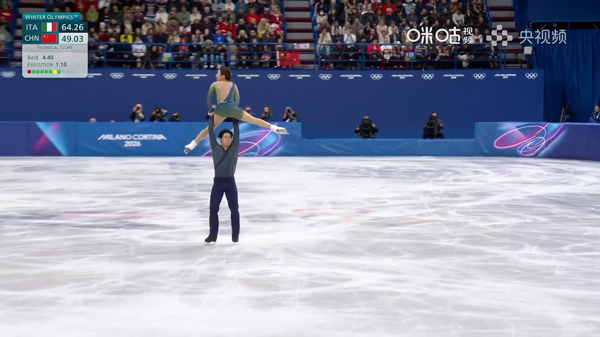 ⛸️米兰冬奥会花样滑冰双人自由滑,中国组合/自由滑得分:135.98分,短节目得分:72.66分,总得分:208.64分;葱桶组合最终排名第五。