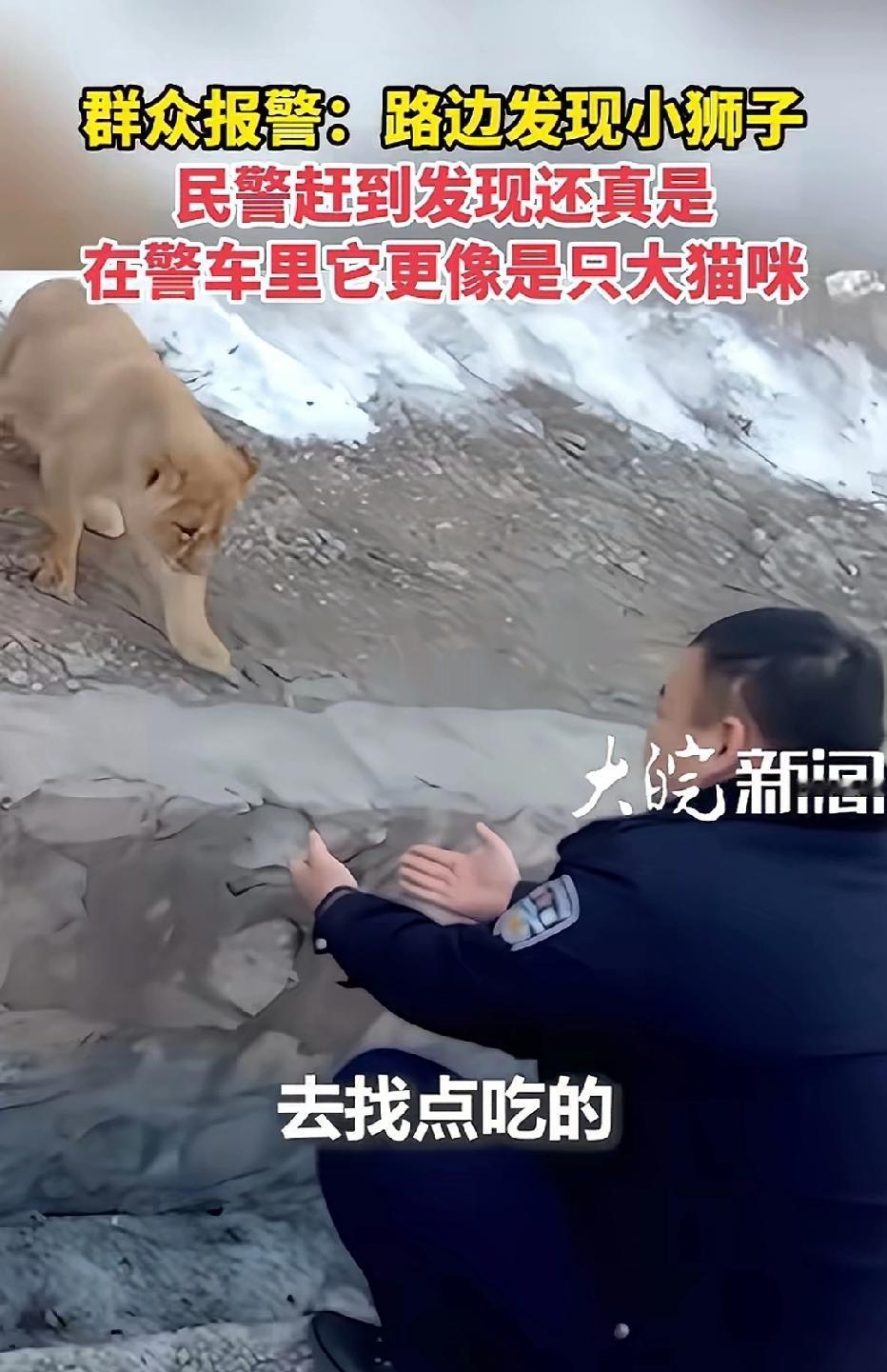 近日山西晋城,3名民警接到群众电话,说马路边竟然有只狮子!民警接到电话后,立马前往了现场! 民警出警后,到那一看,还真是,一只小狮子在路边,比猫稍微大一些,十分可爱,民警过去和小狮子互动了一下,还去拿了高平肉丸给它吃!互动之余,民警趁机把小狮子抓起,带上了警车!后续经过调查,该狮子是在运输途中掉落的,后续将把它送回给所属公司去!