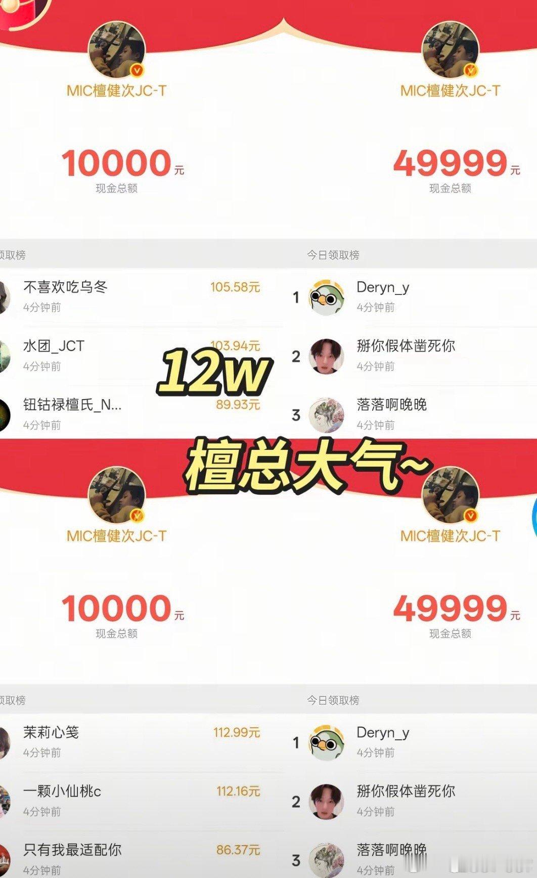 大哥檀健次不仅在除夕夜给小炭火🔥来了一个突袭zb,还卡点10:05给小炭火🔥发了12w的4个大🧧(虽然我没抢到),虽然在剧组过年,还让工作室卡零点发了祝大家新年运气爆棚的sp,大哥檀健次真是细心又周到啊!这么好的檀健次,谁人不爱啊!