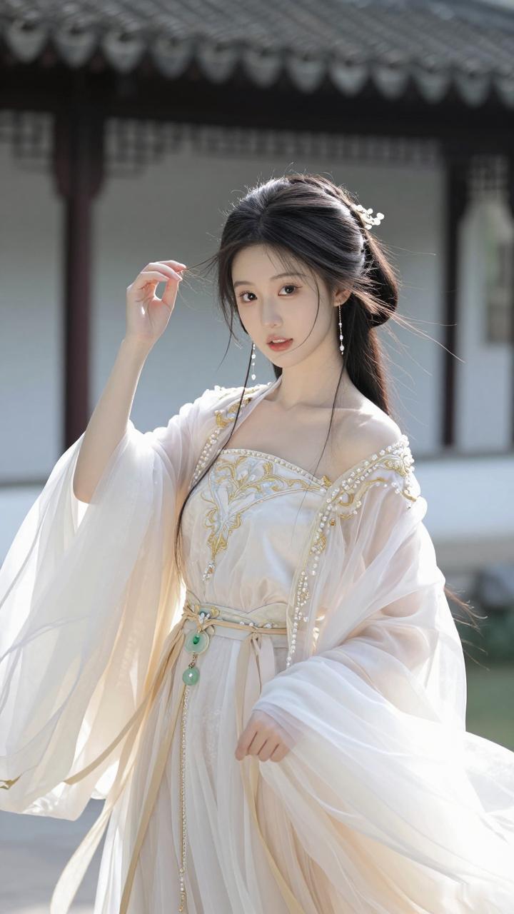 古典美人,发髻簪花,古装飘逸,韵味十足。