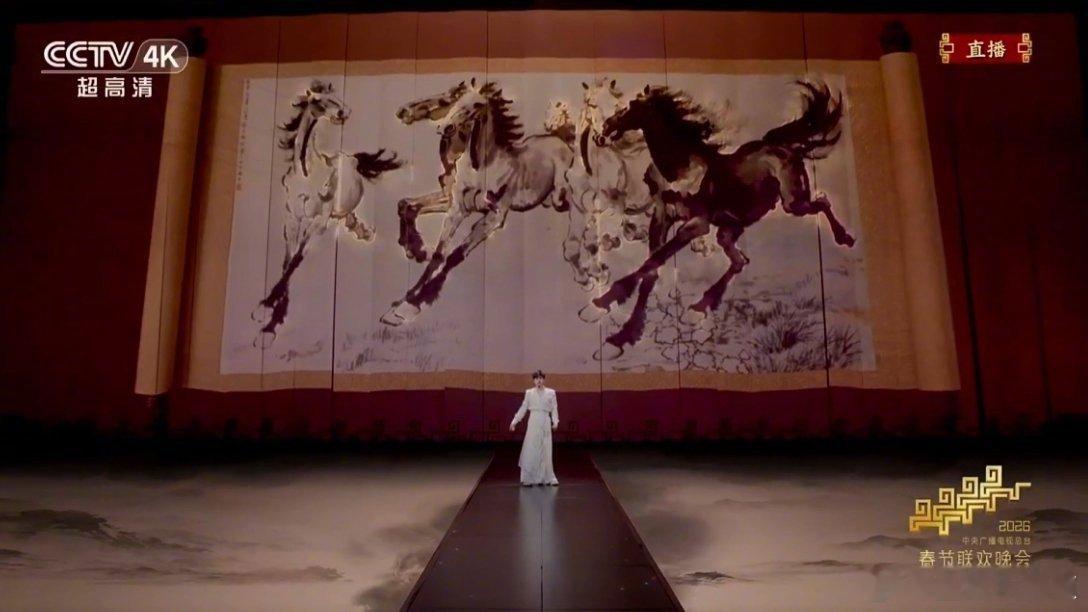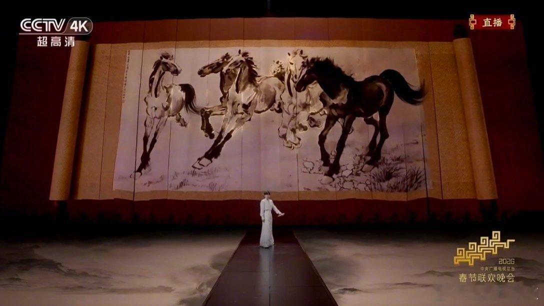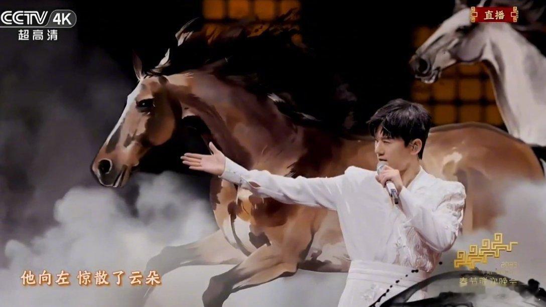 张杰把国画中的马唱活了张杰春晚驭风歌马年第一燃!张杰的歌声唤醒了沉睡的骏马,