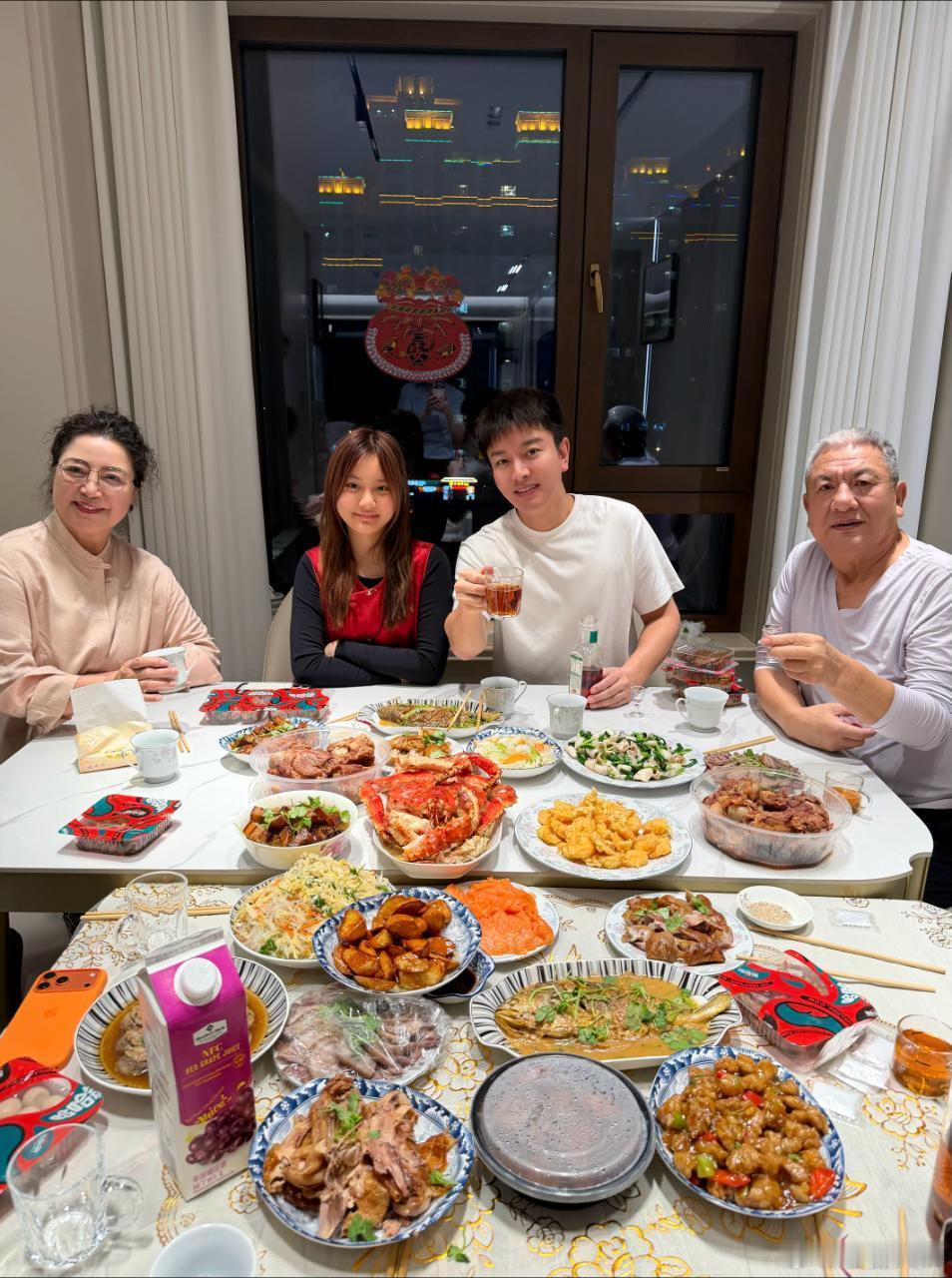 甜馨跟爸爸爷爷奶奶一起过年甜馨贾乃亮共用一张脸 贾乃亮父女太像了
