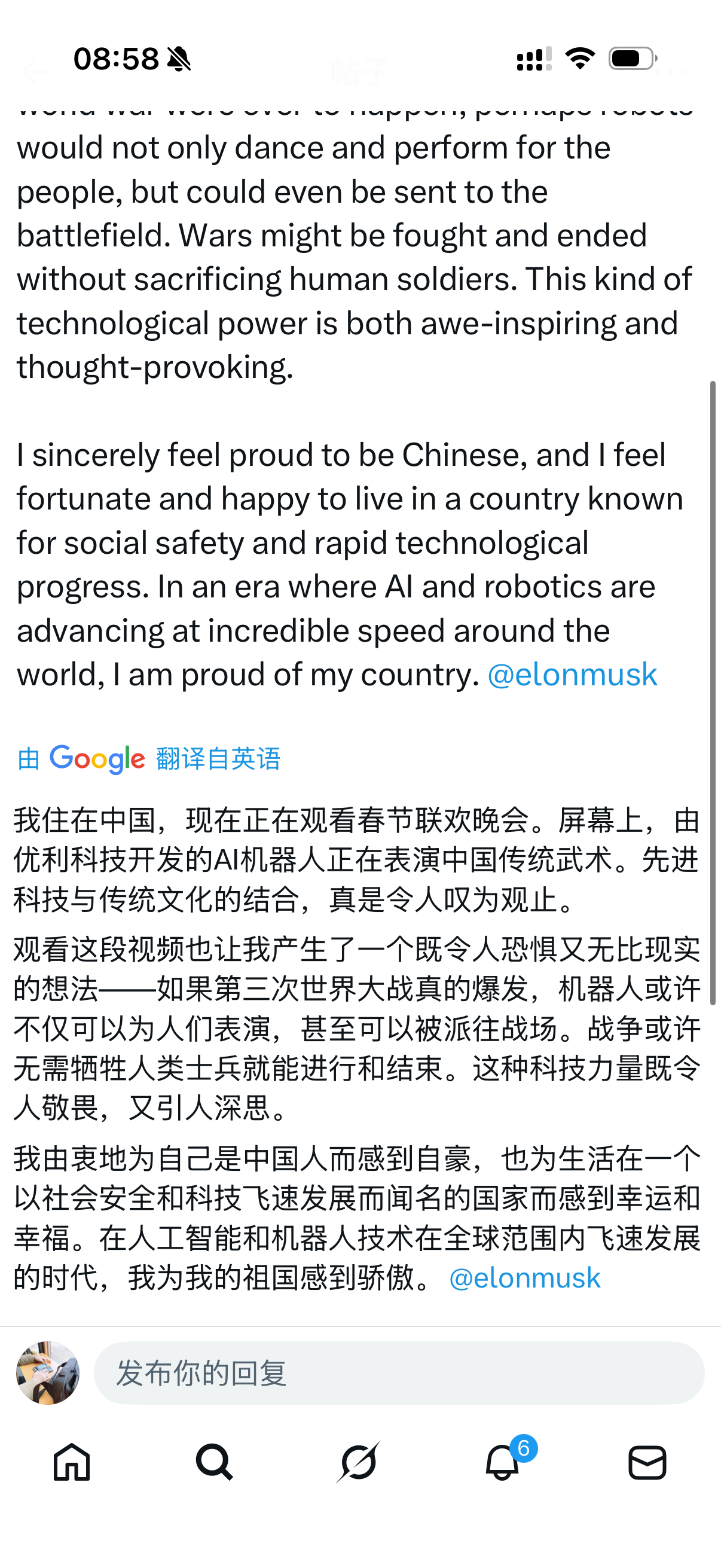 没有拉踩,更多的是赞美,感叹科技的发展。也有不少人开始担忧,未来机器人会不会真的取代人类。