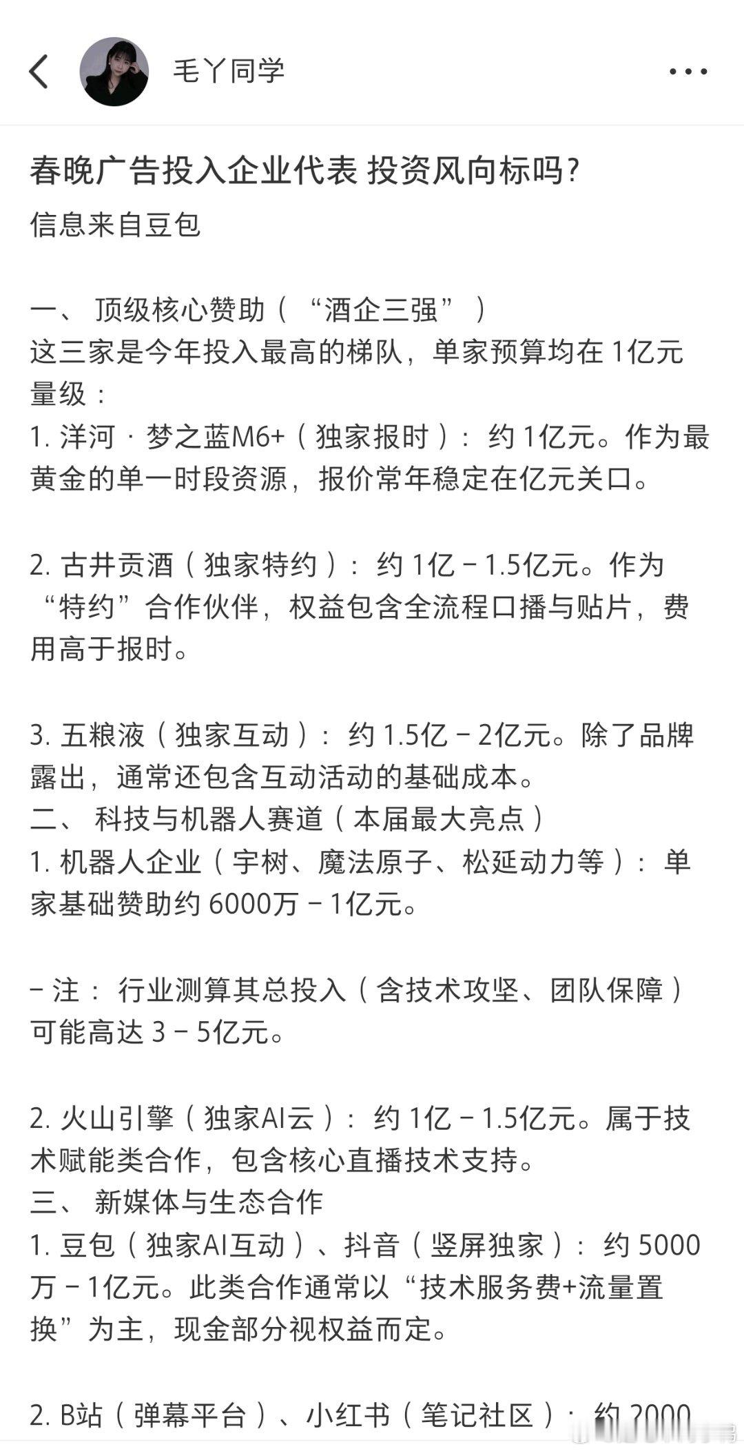 春晚的合作名单,车企里主要是尊界春晚节目单