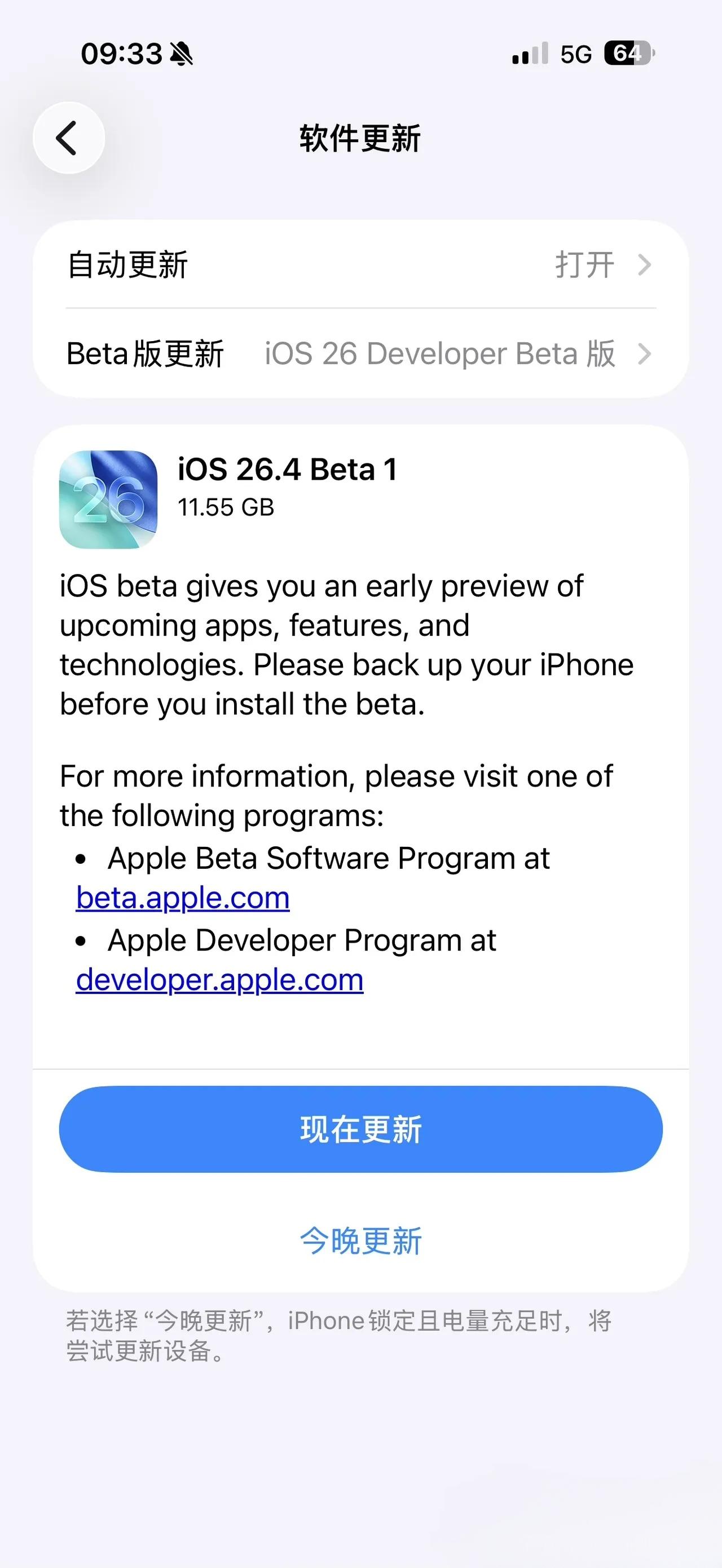 苹果凌晨推送iOS 26.4 Beta 1更新~[祝福]