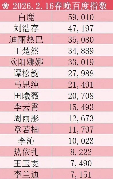 春晚男明星、女明星 百指,符合你的体感吗?