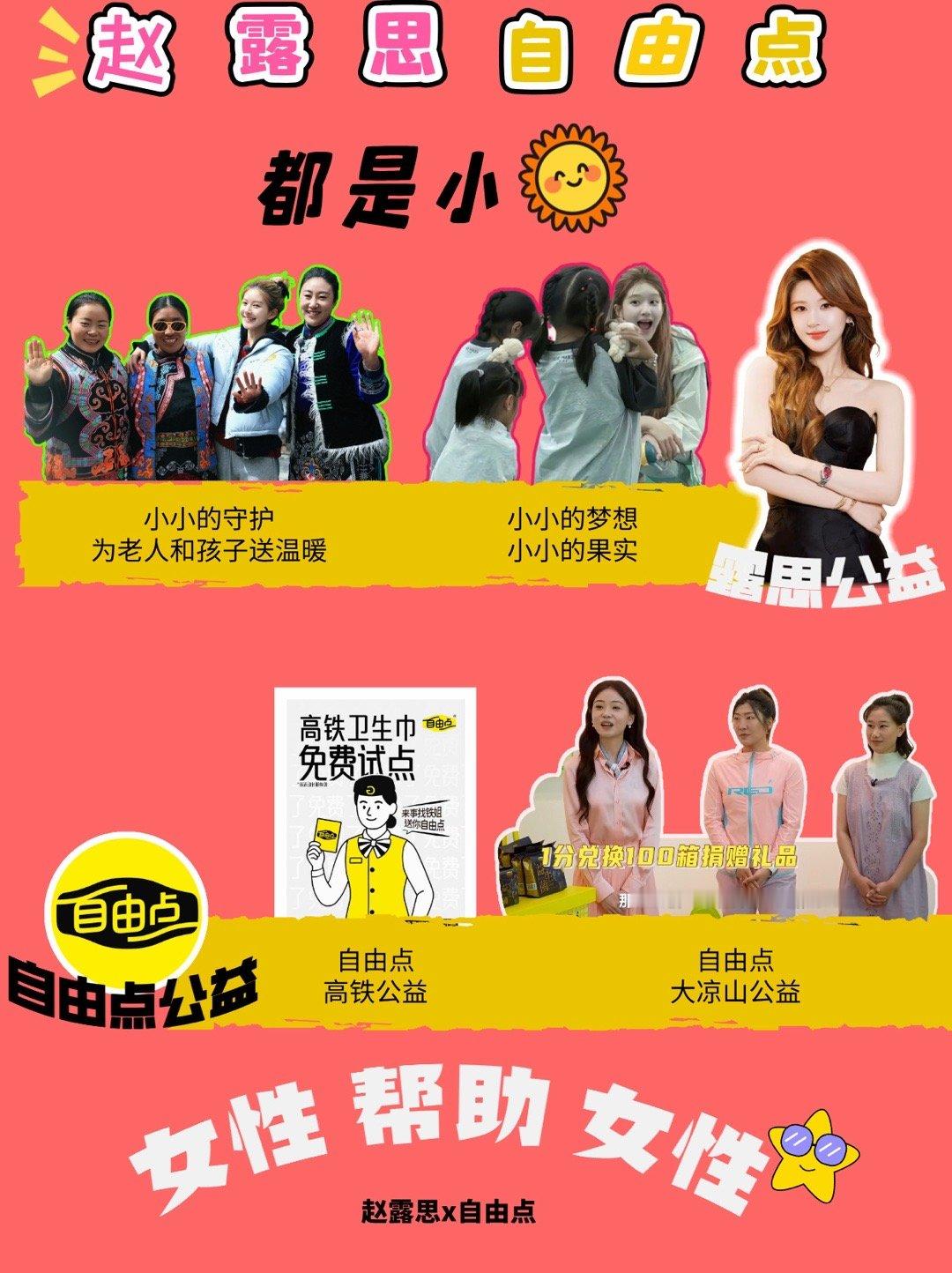 不是因为露思代言才夸自由点看人看人品,看品牌也是看“良心”。大家可能不知道,自由点这个品牌,一直在默默做公益。早在2020年就设立了女性关爱专项基金,不仅走进大凉山给女孩们送卫生用品、上生理健康课,甚至还在高铁上发起了免费卫生巾试点,解决了无数女生出行的尴尬瞬间 。而露思呢?也是那个会把演出费捐出来、甚至摘镯子帮孩子的“小太阳” 。💧 一个默默做好事的品牌,一个满心满眼都是善良的女孩。善良的人遇见善良的品牌,这大概就是最美的相遇。希望大家多多支持这样有温度的自由点,也支持我们人美心善的露思!赵露思自由点公益女性帮助女性自由点卫生巾传递正能量双向奔赴