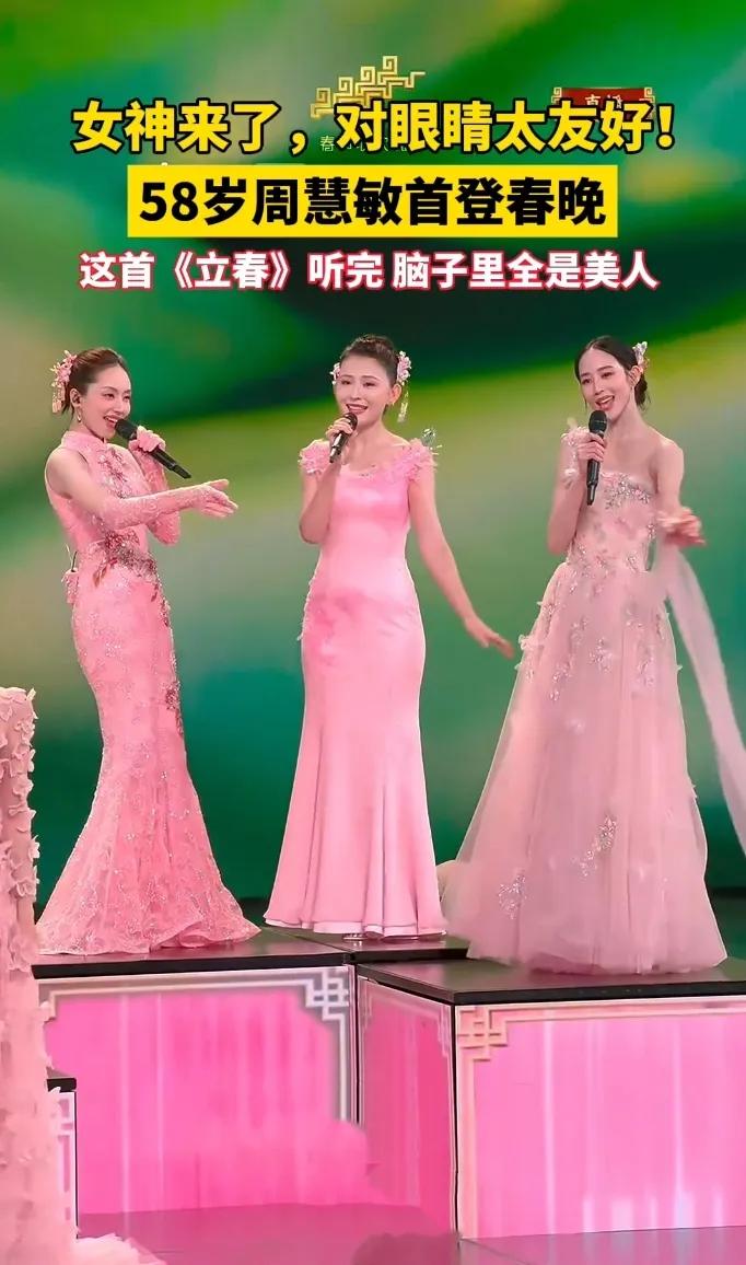 周慧敏春晚首秀太惊艳! 58岁的周慧敏在2026年央视马年春晚献上首次春晚表演,与其他九位女艺人共同演绎歌曲《立春》,由十位不同世代的女艺人联袂献唱。除周慧敏外,阵容包括刘敏涛、梁咏琪、秦海璐、薛凯琪、张钧甯、热依扎、姜妍、刘惜君及希林娜依·高。舞台设计以"百花齐放"为主题,通过屋檐雨落、种子发芽等视觉元素呼应春意,并融入非遗文化中的花卉装饰。周慧敏春晚首秀太惊艳 周慧敏 周慧敏 周慧敏写真照 周慧敏生辰写真 周慧敏写真 周慧合唱