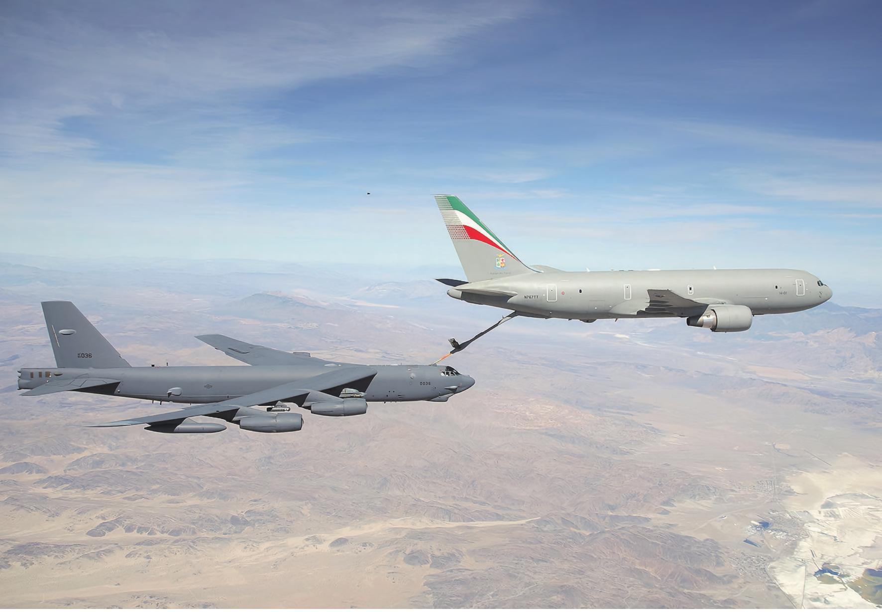 KC-767空中加油机是美国波音公司以波音767-200客机研制的军用改型,专用于出口,2005年5月首飞,其主要的使用国是日本。KC-767安装有波音公司先进的空中加油导管和“远程空中加油操作员Ⅱ系统”,具备一次为8架战斗机补充燃料的能力,能为目前所有的西方战斗机进行加油。KC-767可以在加油飞机和运输飞机之间自由转化,在保持空中加油机主要的加油能力的同时,还具有运输人员和物资的运输能力。