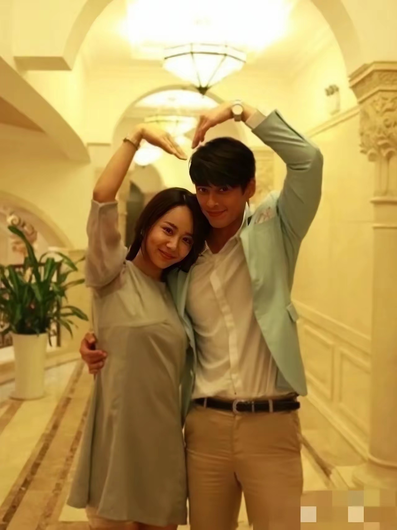 张天爱跟素人合影,胯真的好宽,大宅院似的