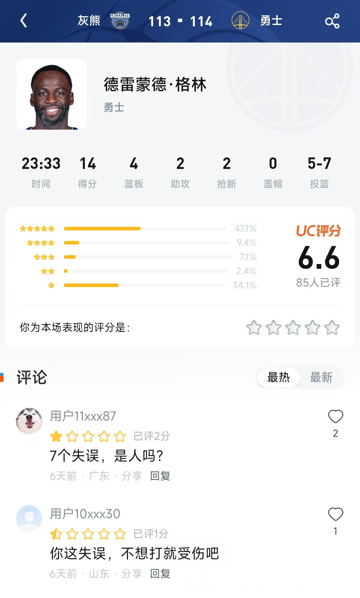 那47.1%的五星,可能是只看数据表的“Excel球迷”,或者是看到“格林进4个三分”就觉得爷青回的情怀粉。