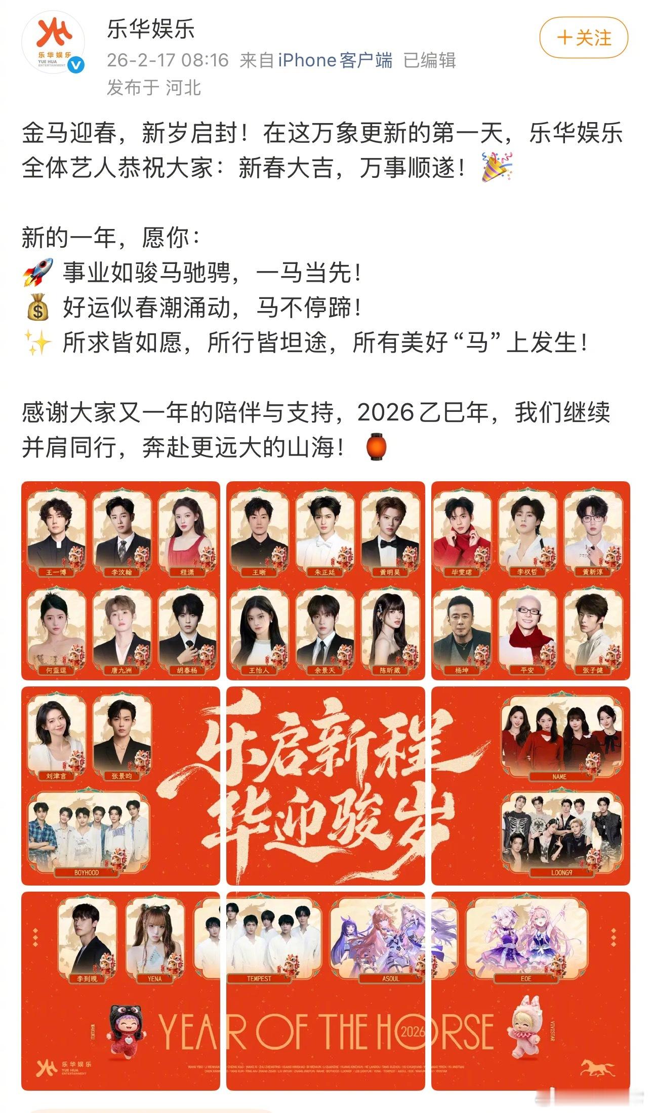 乐华发的艺人新春贺图里没有吴宣仪和孟美岐了