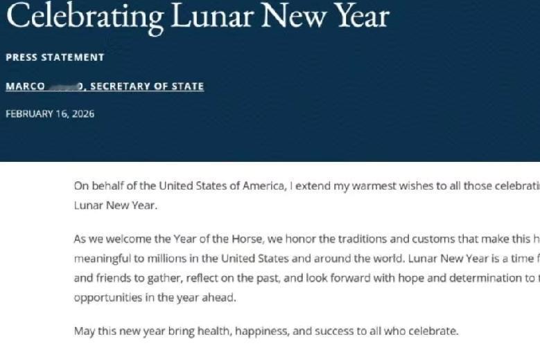 昨天,鲁比奥写道:“我谨代表美利坚合众国,向所有庆祝农历新年的人致以最诚挚的祝福。在迎接农历马年之际,向美国以及世界各地数以百万计,赋予这一节日特殊意义的人们所传承的传统与习俗致敬。农历新年是家人和朋友团聚的时刻,人们在此回顾过去,并以希望与决心展望新一年的机遇。愿新的一年为所有庆祝这一节日的人们带来健康,幸福与成功。” 鲁比奥马年拜年:嘴上送祝福,行动见真章,中美关系且看且行!鲁比奥以国务卿身份送上马年新春祝福,态度客气、礼数周全,是美国高层对华释放的正面姿态。作为过去对华强硬派代表,如今主动致敬农历新年传统,说明美方很清楚:大国竞争再激烈,基本尊重与沟通不能断。从近期频繁释放对话意愿,到新春主动示好,信号很明确——缓和氛围、稳住关系,已是双方共同需求。但农历新年讲究言行一致,我们欢迎善意表态,更期待落到实处:少点制裁打压,多点务实合作。 马年当奔腾向前,中美关系与其停留在节日问候,不如真正相向而行。祝福好听,行动更重要,新一年,且看且行!