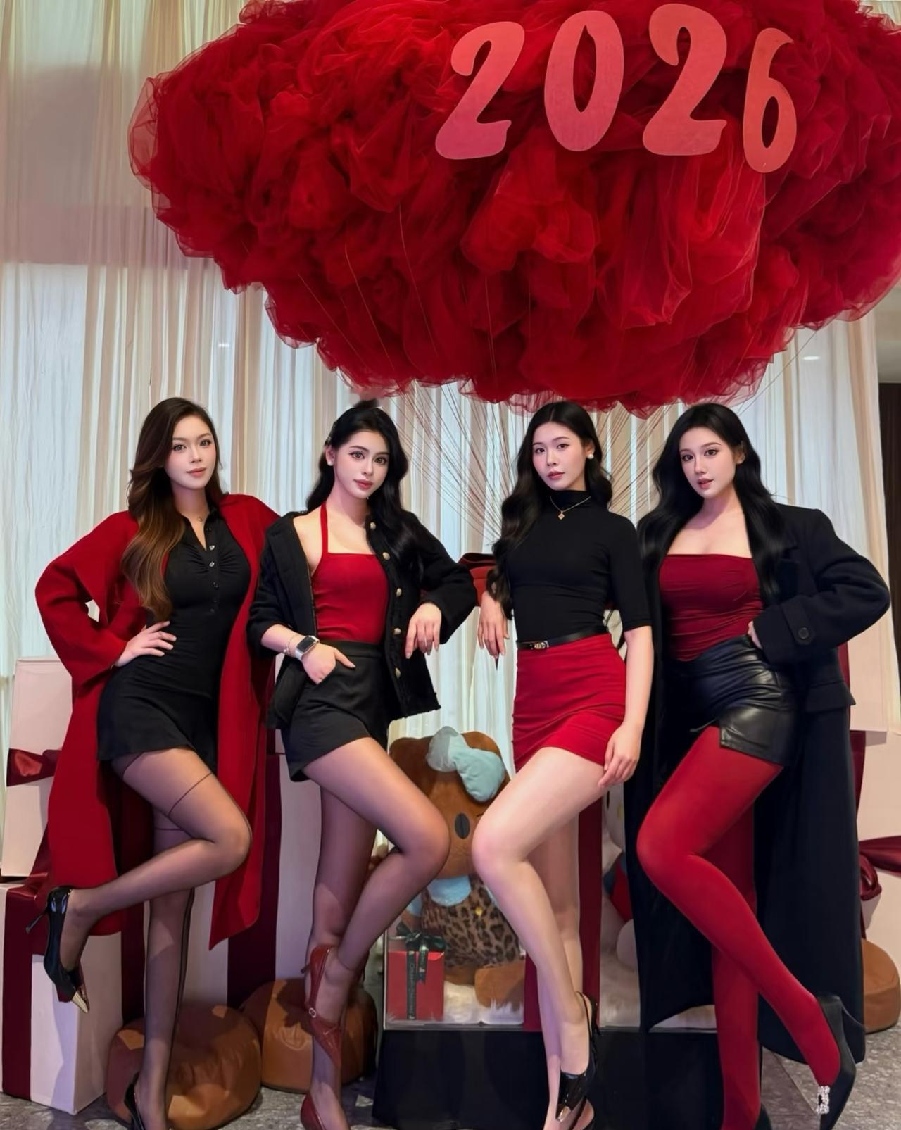 和我的神仙姐妹组局,全员解锁御姐模式。红装加身,丝袜配高跟鞋,将气场拉满两米八。不必刻意迎合年味,我们站在一起,就是最耀眼的烟火。 在这个丙午红马年,拒绝软糯,只做自己的女王。踩着高跟鞋丈量新年的好运,借着红火穿搭锁定一整年的顺遂。 祝我们:红红火火过大年,美貌与财富双丰收!2026,一起策马扬鞭,飒翻全场!红马年穿搭
