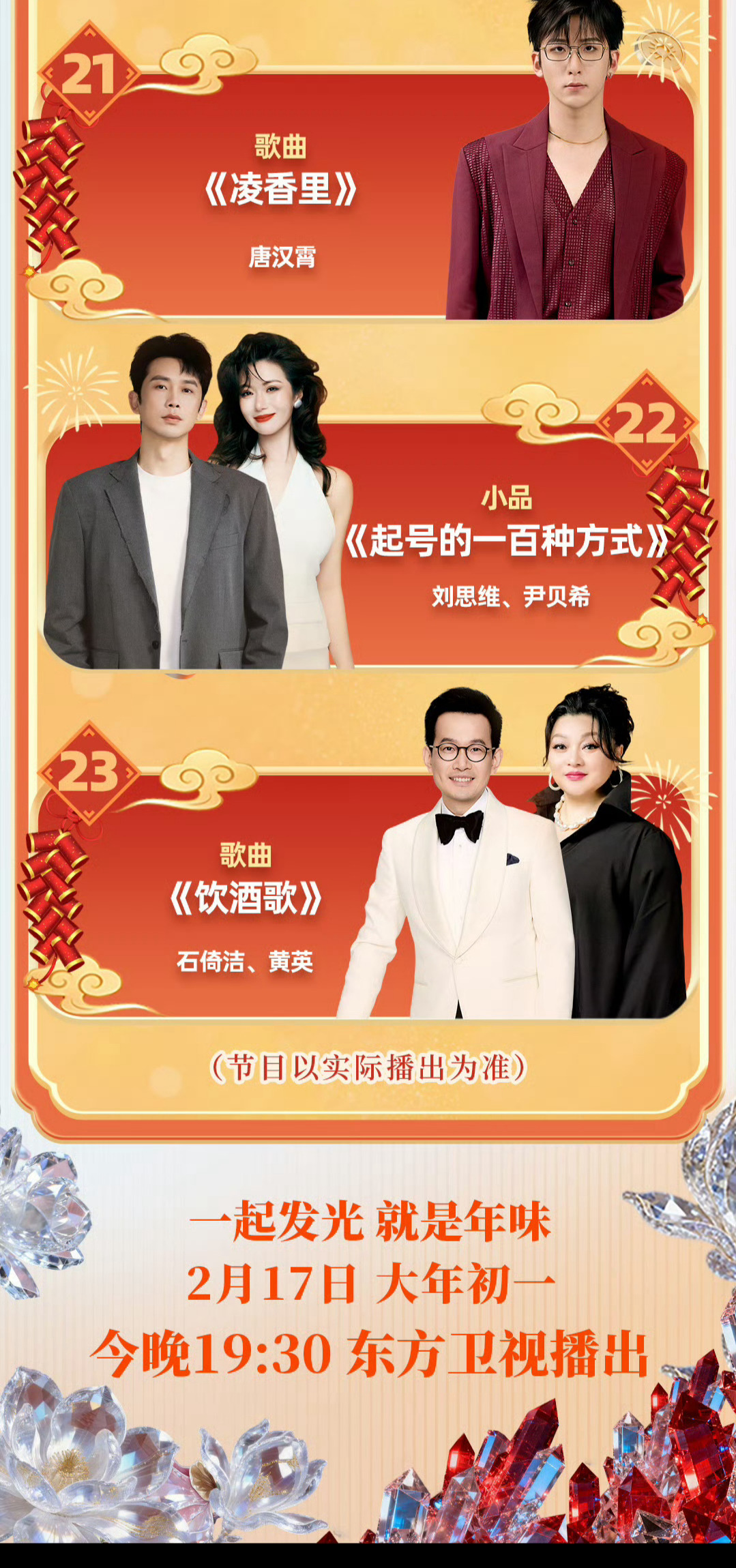 全员实力派,耳朵要享福了🎙️!东方卫视春晚节目单来了 胡彦斌双舞台唤醒童年回忆,陈楚生携手爱乐乐团演绎《获奖之作》,萧敬腾挑战马戏实景音乐剧。大年初一晚19:30,海派旋律配实力唱腔,这才是新春听歌的正确打开方式!