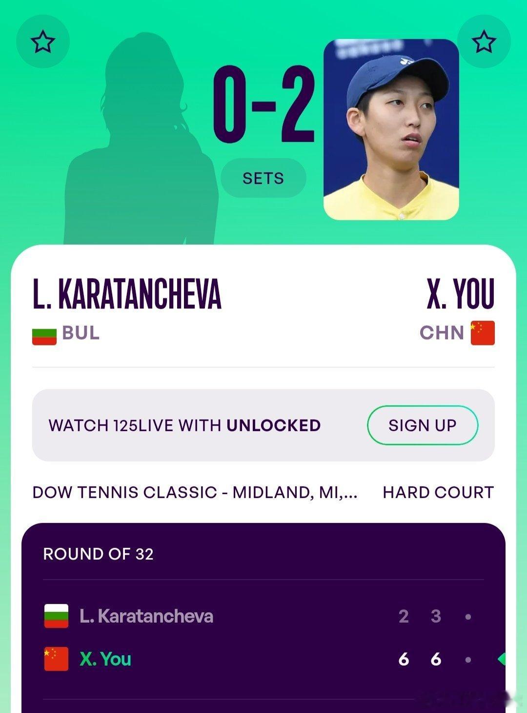 尤晓迪🇨🇳6-2/6-3战胜克拉坦切娃🇧🇬,晋级第2轮,恭喜尤晓迪!🎉🎉🎉