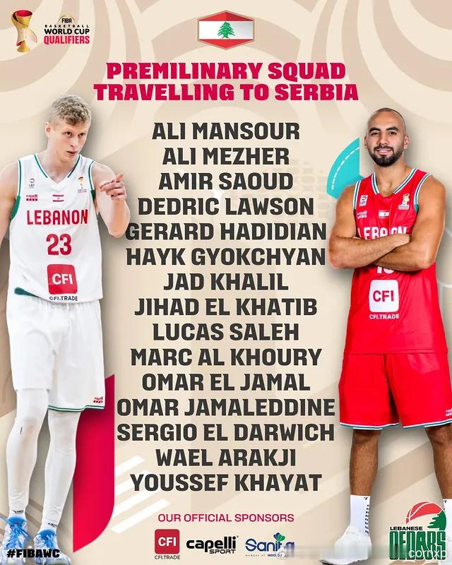 黎巴嫩男篮宣布世预赛第二窗口期预选名单亚洲篮球FIBA