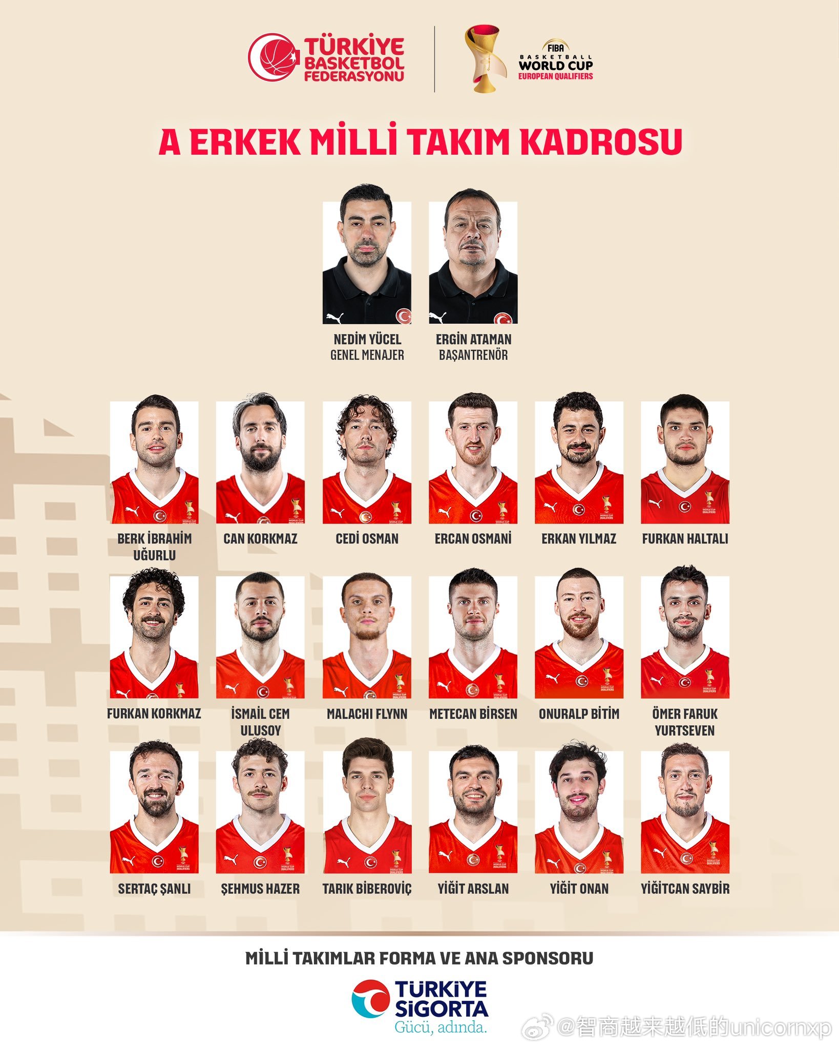 土耳其篮协宣布18人世预赛第二窗口期国家队集训名单,Malachi Flynn正式入选土耳其男篮欧洲篮球FIBANBA