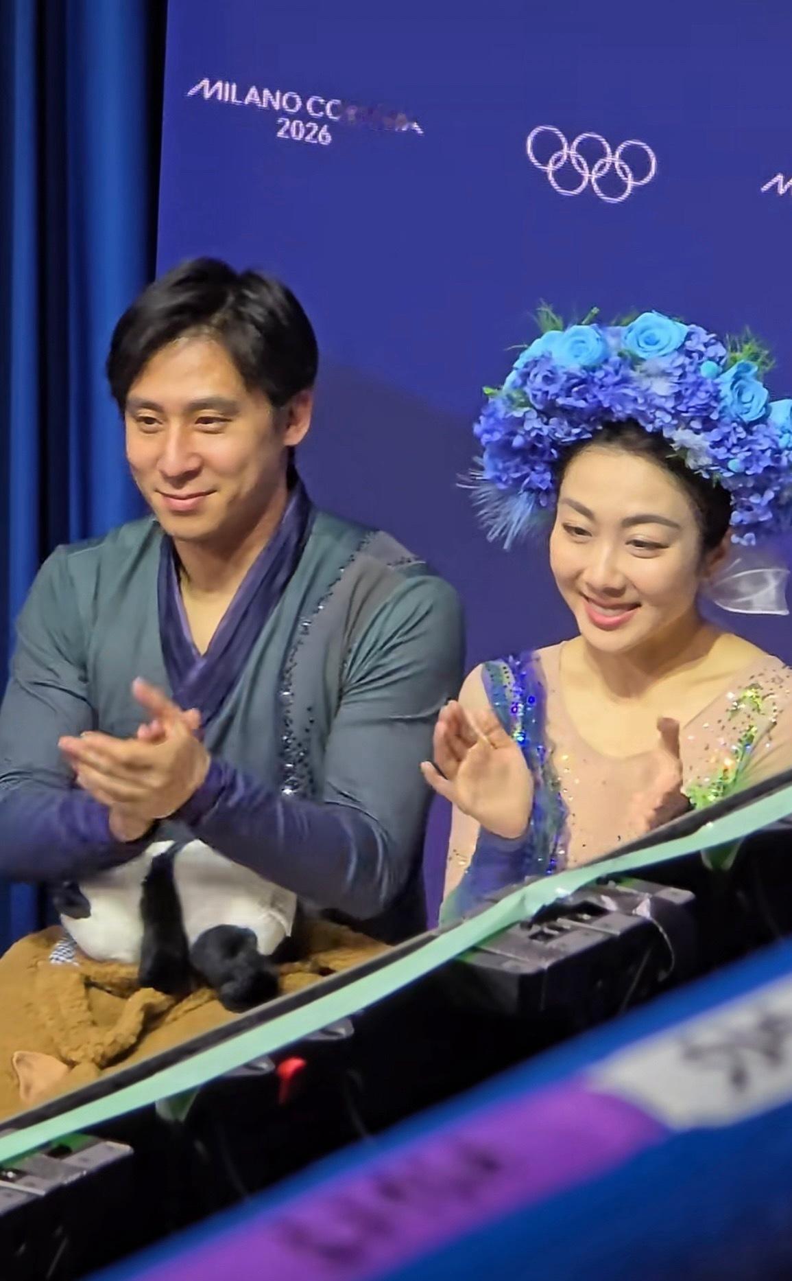 隋文静韩聪下班快乐 凌晨结束的米兰冬奥会花样滑冰自由滑中,卫冕冠军隋文静、韩聪演绎《只此青绿》,拿到135.98分,刷新两人赛季最好成绩,“葱桶”组合总分208.64,最终排名第五。