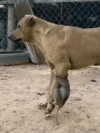 哭笑不得!一只狗狗,自己跑到山里溜达,等回家的时候,主人就看它一直不停甩腿,走路怪怪的。走近一看直接笑喷了,有一只小猴子死死抱着狗狗的腿,怎么都不肯撒手。 那天天气特别好,阳光晒得人暖洋洋的,家里的大黄狗像往常一样,吃完早饭就撒着欢儿往屋后的山里跑,平时它最多一两个小时就会乖乖回来,可这次主人等了快大半天,才看见它一瘸一拐、磨磨蹭蹭地往家门口挪。远远看去,大黄狗的姿势别提多奇怪了,走两步就使劲甩一下后腿,脑袋还时不时低下去啃两口,像是身上沾了什么甩不掉的东西,那副又着急又无奈的样子,让主人心里犯嘀咕,还以为它在山里不小心扎了刺,或是被什么小虫子咬了。 等主人快步走到跟前,看清挂在狗腿上的东西时,当场就忍不住笑出了眼泪,哪是什么伤口啊,分明是一只巴掌大的小猴子,两只小爪子死死攥着狗狗腿上的毛,小身子紧紧贴在狗腿上,不管大黄狗怎么甩、怎么抖,它都像块牛皮糖一样粘得牢牢的,半点没有要松开的意思。小猴子看起来也就刚出生没多久,浑身的毛软乎乎的,眼睛圆溜溜的,一点都不怕人,反而还歪着头打量着周围,一副赖定了大黄狗的模样。 主人试着伸手去掰小猴子的爪子,可这小家伙力气大得很,爪子攥得紧紧的,稍微用点力,它就发出细细小小的叫声,听起来可怜巴巴的,大黄狗原本还在不停挣扎,听到小猴子叫,居然慢慢安静下来,不再甩腿,只是低着头,用鼻子轻轻蹭了蹭小猴子,那模样又委屈又温柔,让人看了又好笑又心软。 后来主人琢磨着,应该是大黄狗在山里闲逛的时候,偶遇了这只和猴群走散的小猴子,小猴子年纪太小,找不到妈妈,又害怕山林里的危险,看见大黄狗个头不小,看起来又温顺,就把它当成了依靠,死死抱着不肯松手。大黄狗虽说心里一百个不愿意,被缠得走都走不好,可骨子里的温顺让它没法狠心甩掉这个小累赘,就这么一路驮着小猴子,慢悠悠地从山里走回了家。 其实这种小动物之间奇妙的缘分,生活里并不少见,动物们的情感简单又纯粹,没有太多的算计和想法,害怕了就找依靠,温柔了就会包容,大黄狗的无奈和小猴子的依赖,凑在一起成了让人哭笑不得的温馨画面,没有刻意的安排,却比很多刻意设计的场景更动人。 有人说这只小猴子太聪明,懂得找个“保镖”保护自己,也有人说大黄狗太心软,被缠成这样都不生气,还有人担心这只小猴子是保护动物,得好好联系相关部门送回山林。不管怎么说,这一幕意外的相遇,给主人的生活添了不少乐子,也让大家看到了小动物之间最质朴的温情,没有利益牵扯,只是最本能的依靠和陪伴。 对于此事,各位怎么看?