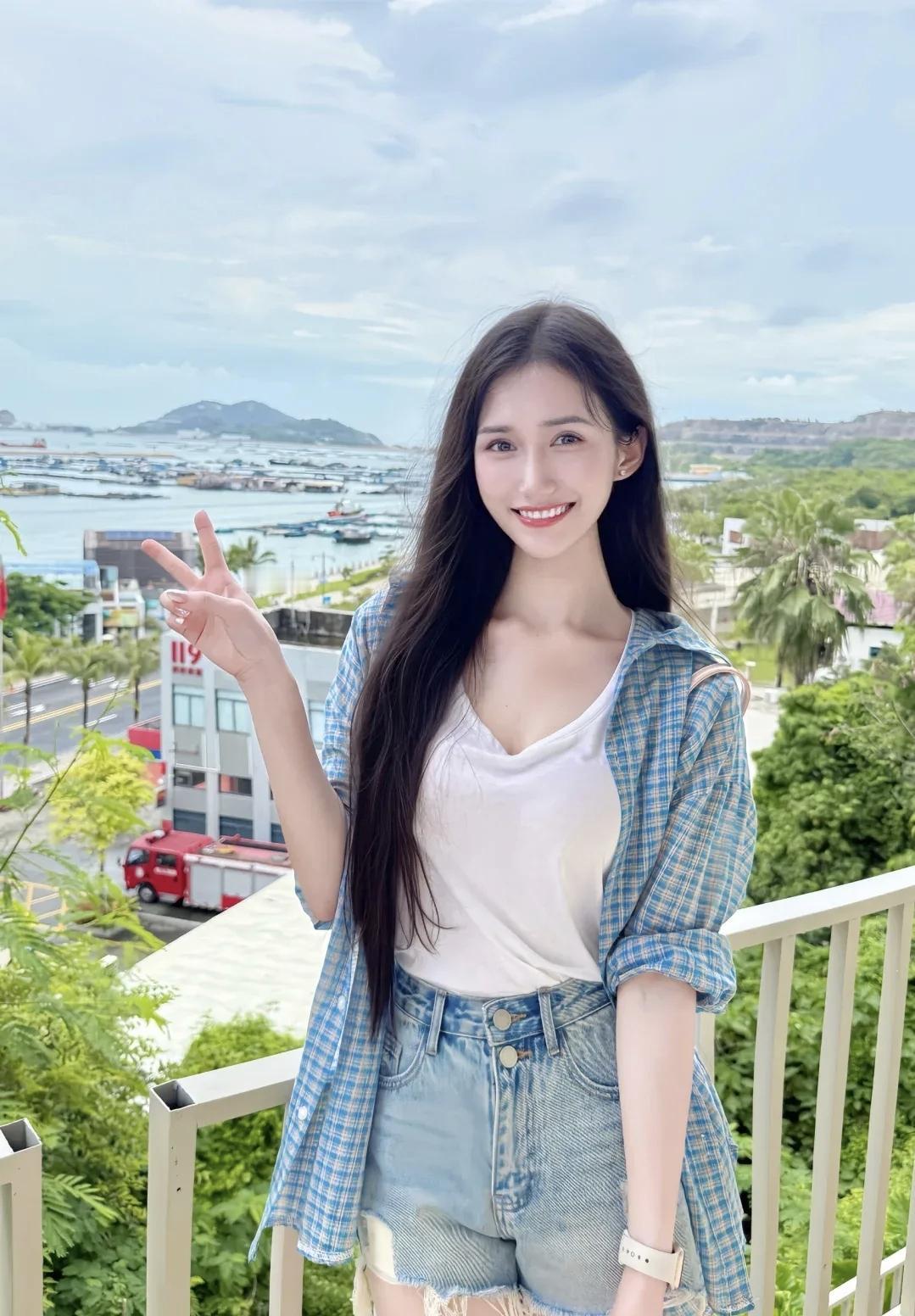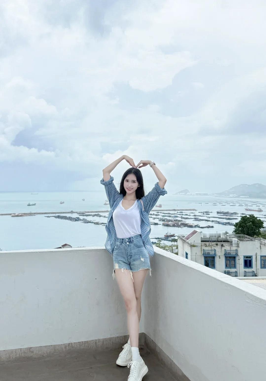 海边少女,阳光沙滩,心心相印