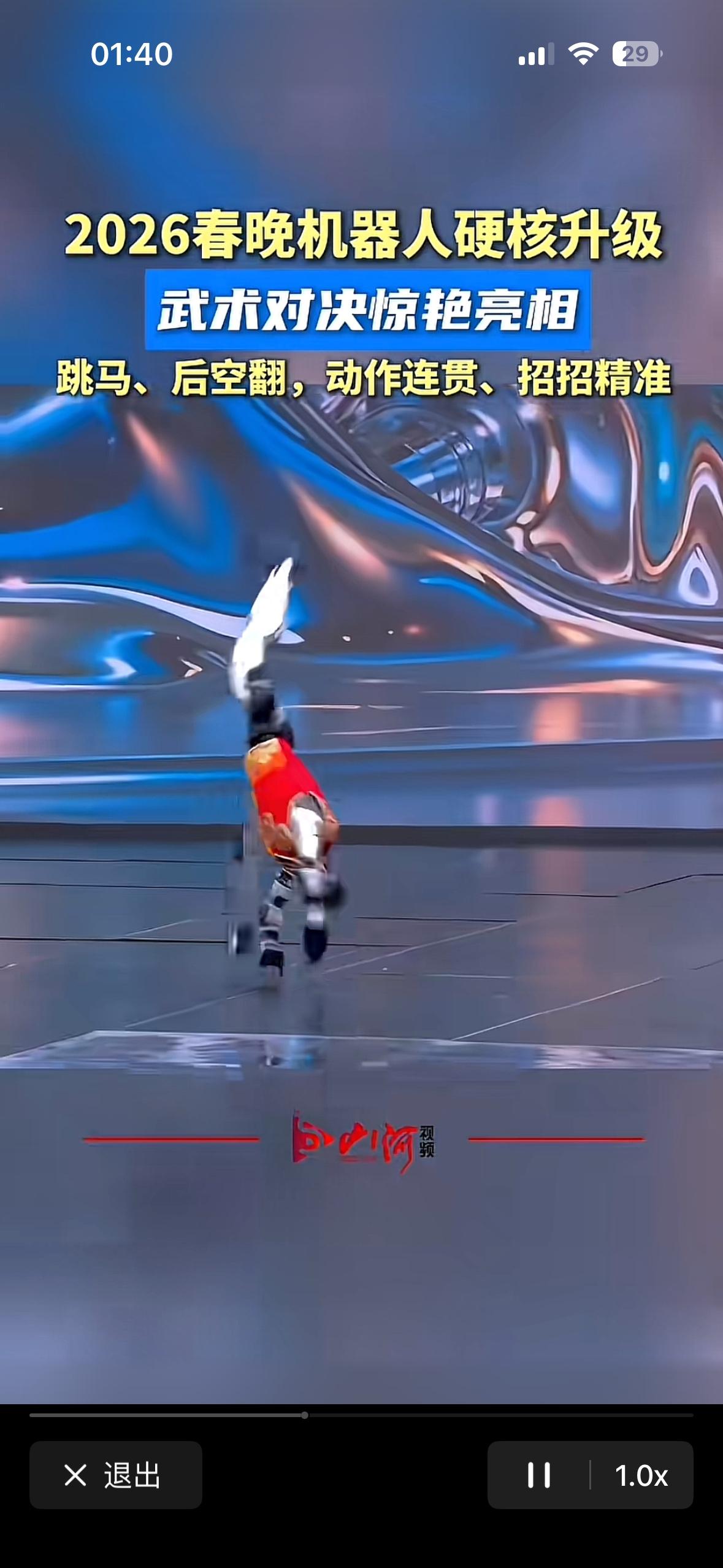春节晚会的宇树机器人又爆出圈了。其实内行人一看就知道,这只有遥控编程的固定动作而已。难度其实很低的,很多专家都这样告诉我们。 如果跟马斯克的机器人和波士顿的机器人比起来,其实差得很远。他们的机器人又低调又不张扬,在快速的进步当中。以实用,务实的态度引领机器人。 大年初一在家轻点喷,祝大家新的一年飞黄腾达马到功成!