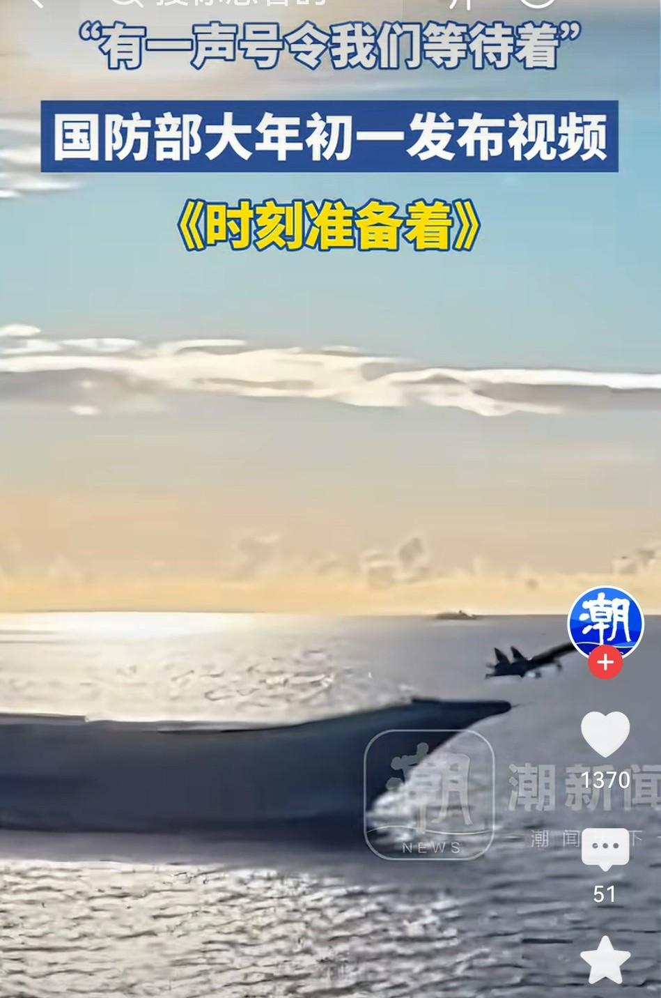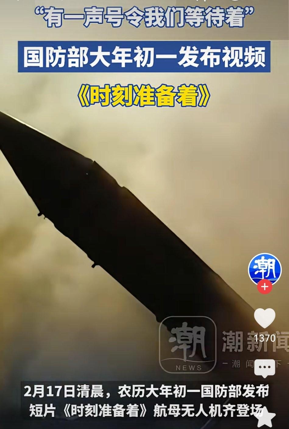 大年初一国防部重磅视频!《时刻准备着》,这就是中国马年最强底气 马年大年初一,全网沉浸在团圆喜庆中时,国防部硬核发布视频《时刻准备着》,迅速刷屏。 这支视频不是普通祝福,而是给全国人民的定心丸,更是向世界亮出的硬核态度! 我们围坐桌前吃饺子、看春晚,享受着岁月静好的安稳,可这份安稳的背后,从来不是理所当然。 视频里没有节日的喧嚣,只有边关的风雪、远海的波涛、蓝天的战位。 严寒里,战士身着厚装目光如炬;大洋中,战舰劈波斩浪持续巡航;蓝天间,战机编队划破长空完成实战训练。 他们放下了与家人的团聚,把对家的思念藏在钢枪里、融在训练中,用坚守替我们守住了万家灯火。 战机呼啸、战舰列阵、导弹昂首,视频里的每一个硬核装备画面,都展现着人民军队的现代化实力。 这些不是摆拍的“道具”,而是时刻处于战备状态的钢铁盾牌,直白传递出:人民军队全时待战、随时能战,任何企图侵犯我国主权、破坏和平的势力,都必将遭到迎头痛击。 视频开篇那句“有一声号令我们等待着”,字字千钧。 对亿万百姓来说,这是最安心的承诺——无论何时何地,国家有需要、人民遇危难,军队永远是最可靠的后盾 对外界来说,这是最明确的威慑——中国从不主动惹事,但绝不怕事,维护国家主权和利益的决心,从来绝不退让。 哪有什么平安顺遂,不过是有人枕戈待旦;哪有什么岁月静好,不过是军人时刻准备着。 马年新春的这份“安全感大礼”,让每一个国人都心生底气。 正是有这群最可爱的人坚守战位,我们才能安心欢度佳节、奔赴美好未来。 看完《时刻准备着》视频,你最想对坚守岗位的军人说什么?欢迎在评论区留言致敬,为守护祖国的他们点个赞!