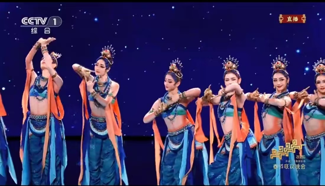 新疆舞剧龟兹登上2026年总台春晚舞剧龟兹 教科书级别的文化复原!《丝路古韵》精准复刻克孜尔石窟第38窟“天宫伎乐图”,14位舞者姿态全源自壁画。无乐器却演活箜篌琵琶,每一个手势都有文物考证,端庄与灵动间,千年壁画真的“流动”起来了!