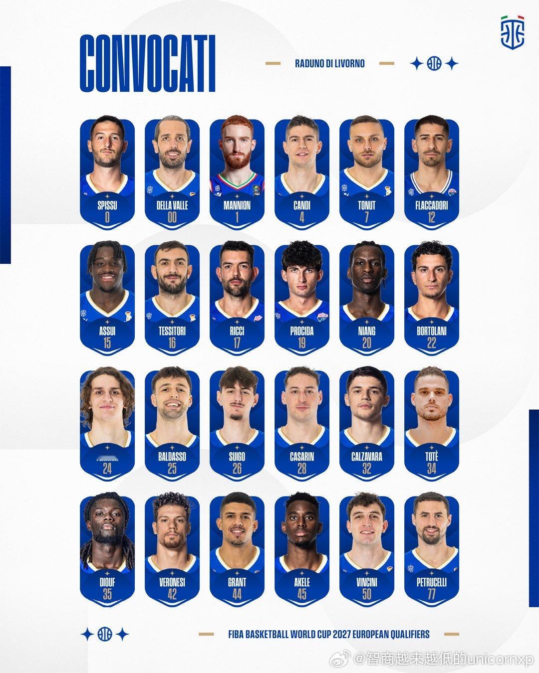 意大利篮协宣布24人的世预赛国家队集训名单欧洲篮球FIBA
