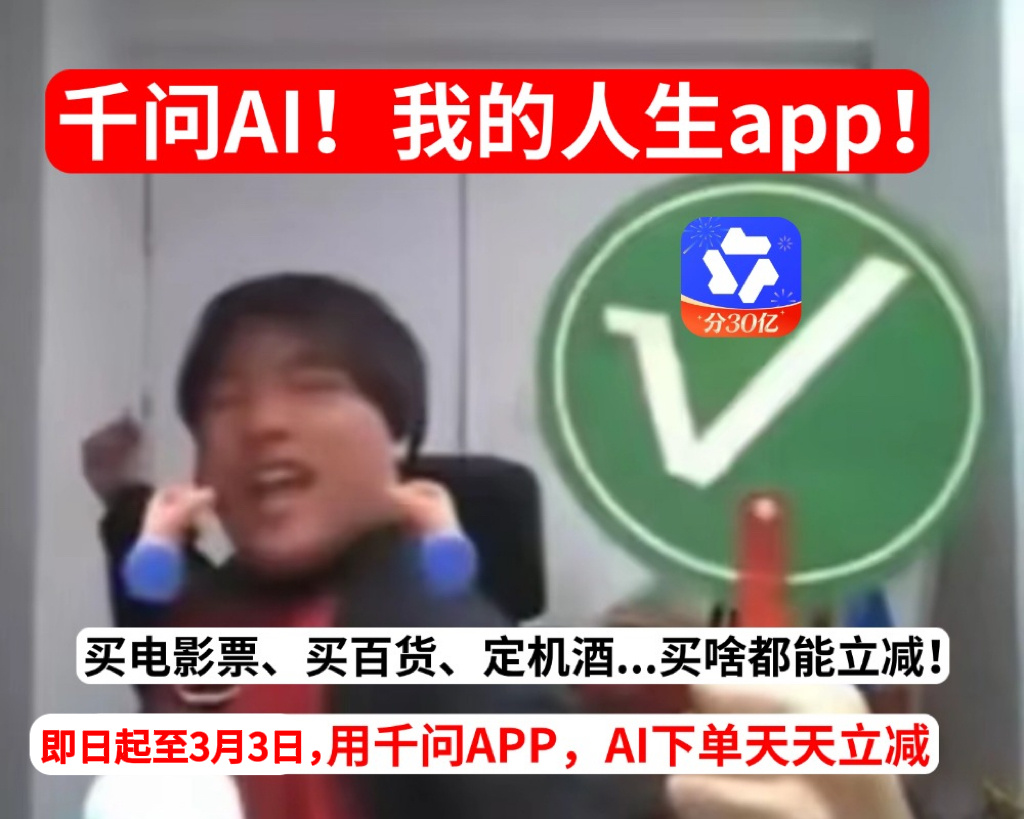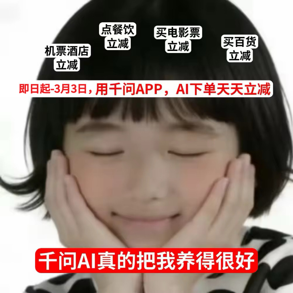 千问没有免单卡也能天天减免 啊这...我把千问当“大款”,千问把我当家人,没有优惠卡也能天天减免。刚刚试了一下买电影票,什么都没有领取,直接下单就是立减5.8,问就是千问天天立减优惠。
