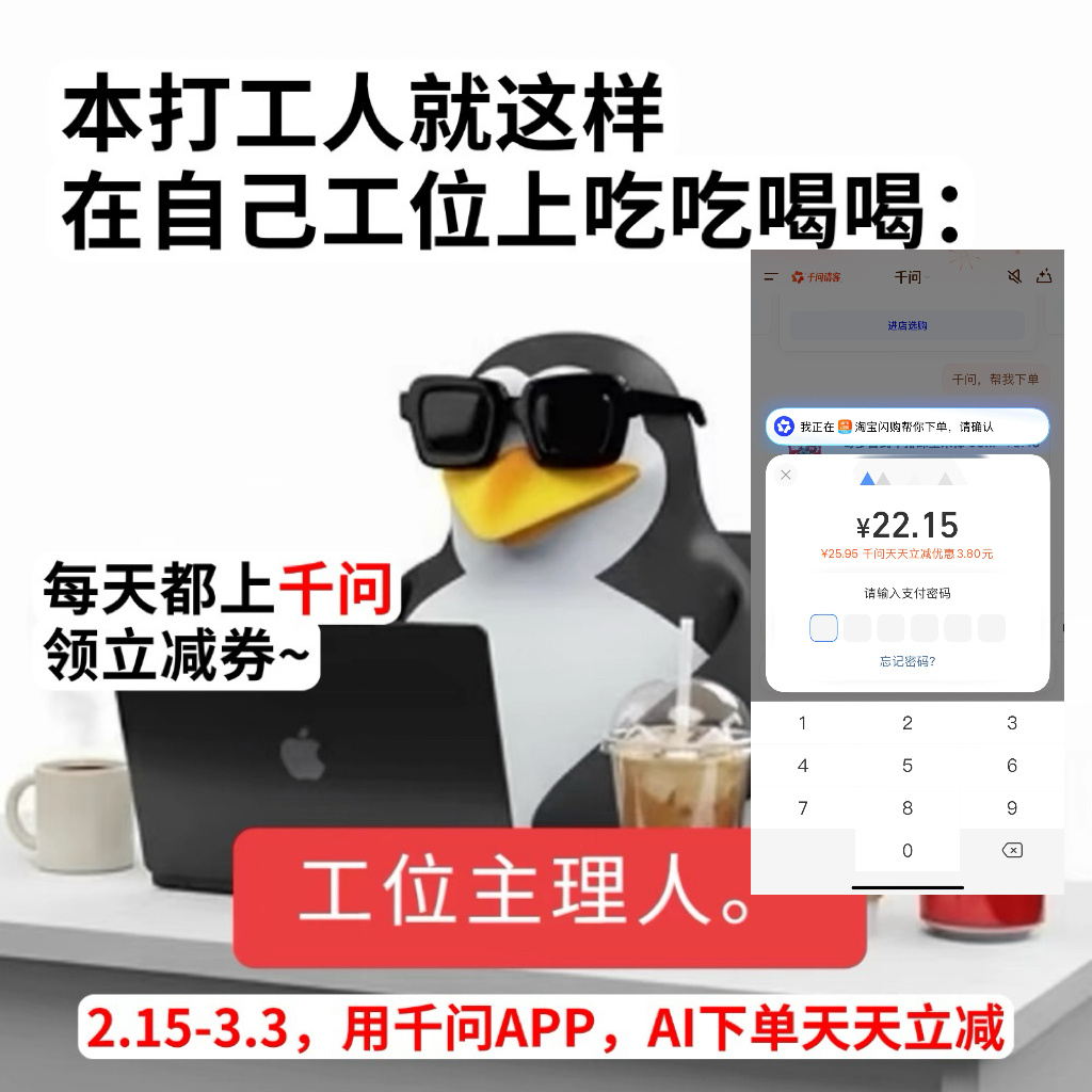 每天都能领,真的超划算~不管买杯咖啡还是买个零食,随手一用就省钱!操作超简单,用千问下单点一下就能减,省下的钱又能多买杯奶茶啦~