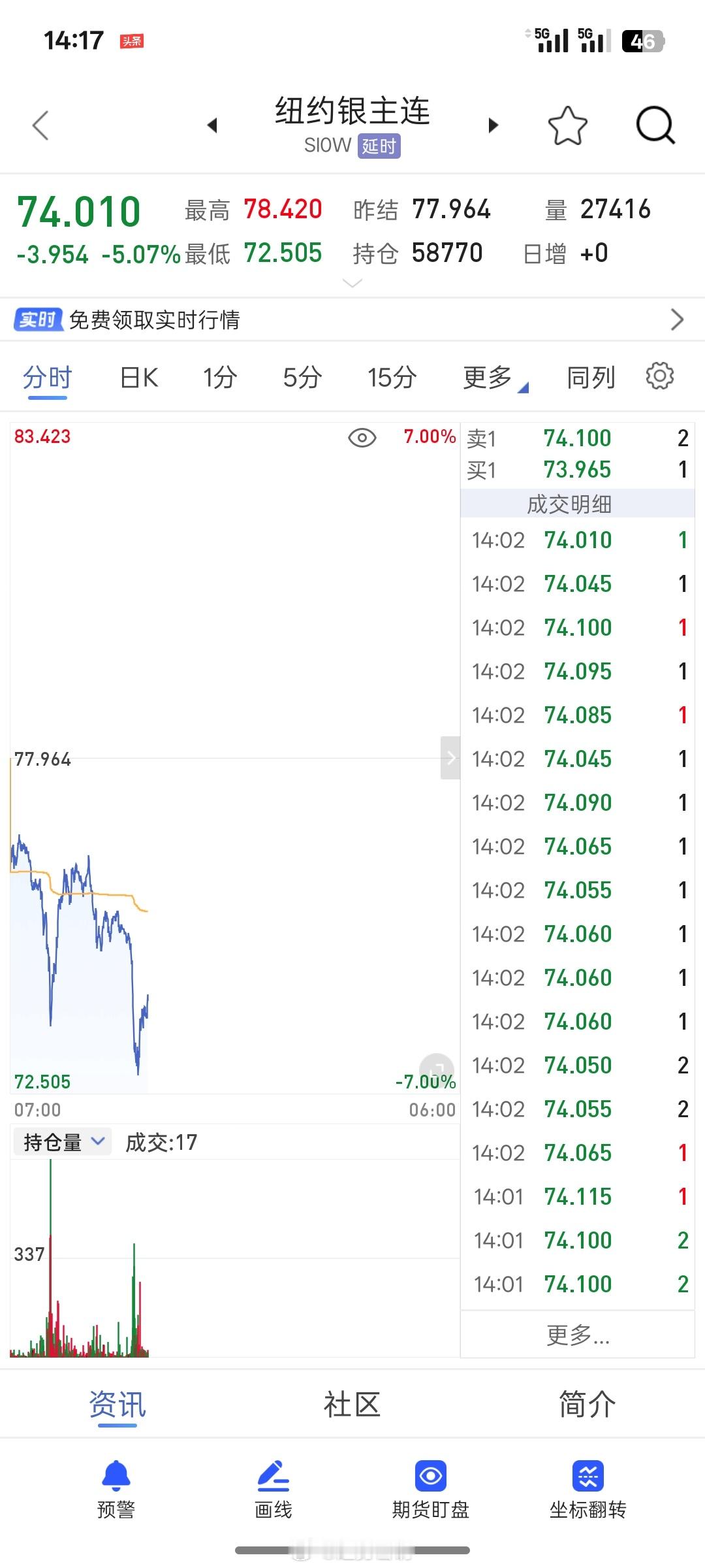 2月17日,黄金、白银直线跳水。现货黄金向下跌破4900美元,日内跌超2%。现货白银跌近5%,跌破73美元。