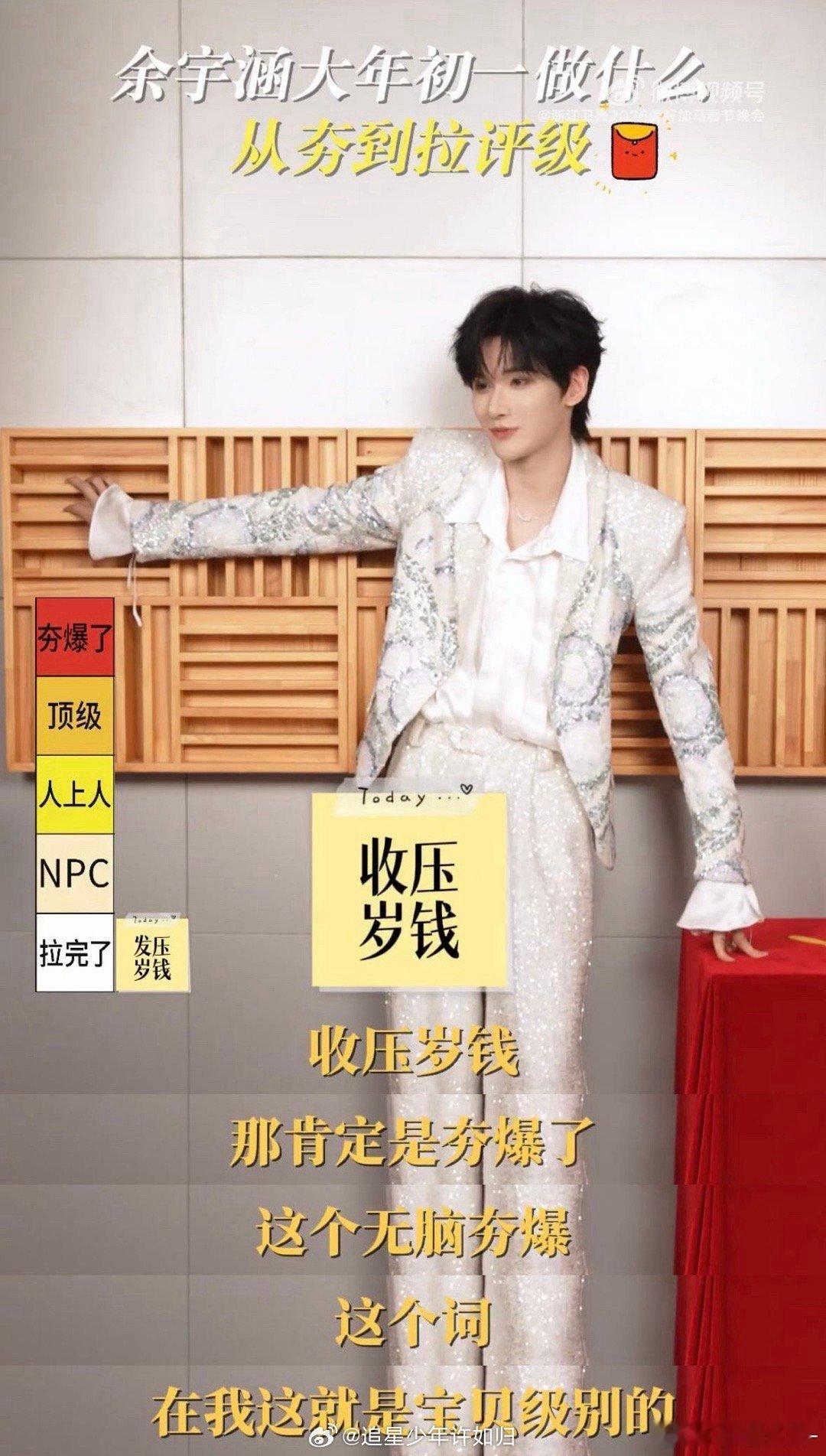 夯就一个字余宇涵说了很多次浙江卫视春晚 余宇涵的夯拉标准太有参考价值了!收压岁钱夯爆,发压岁钱拉垮;看浙江卫视春晚夯爆,听八卦更是夯爆中的夯爆!今晚19:30,跟着余宇涵的节奏一起看春晚!
