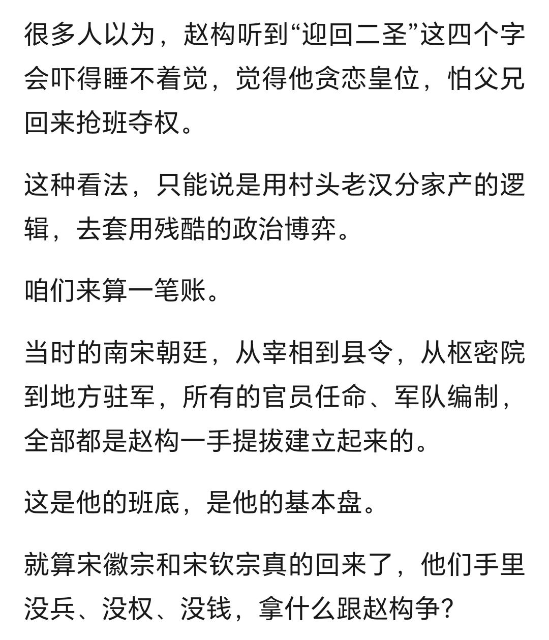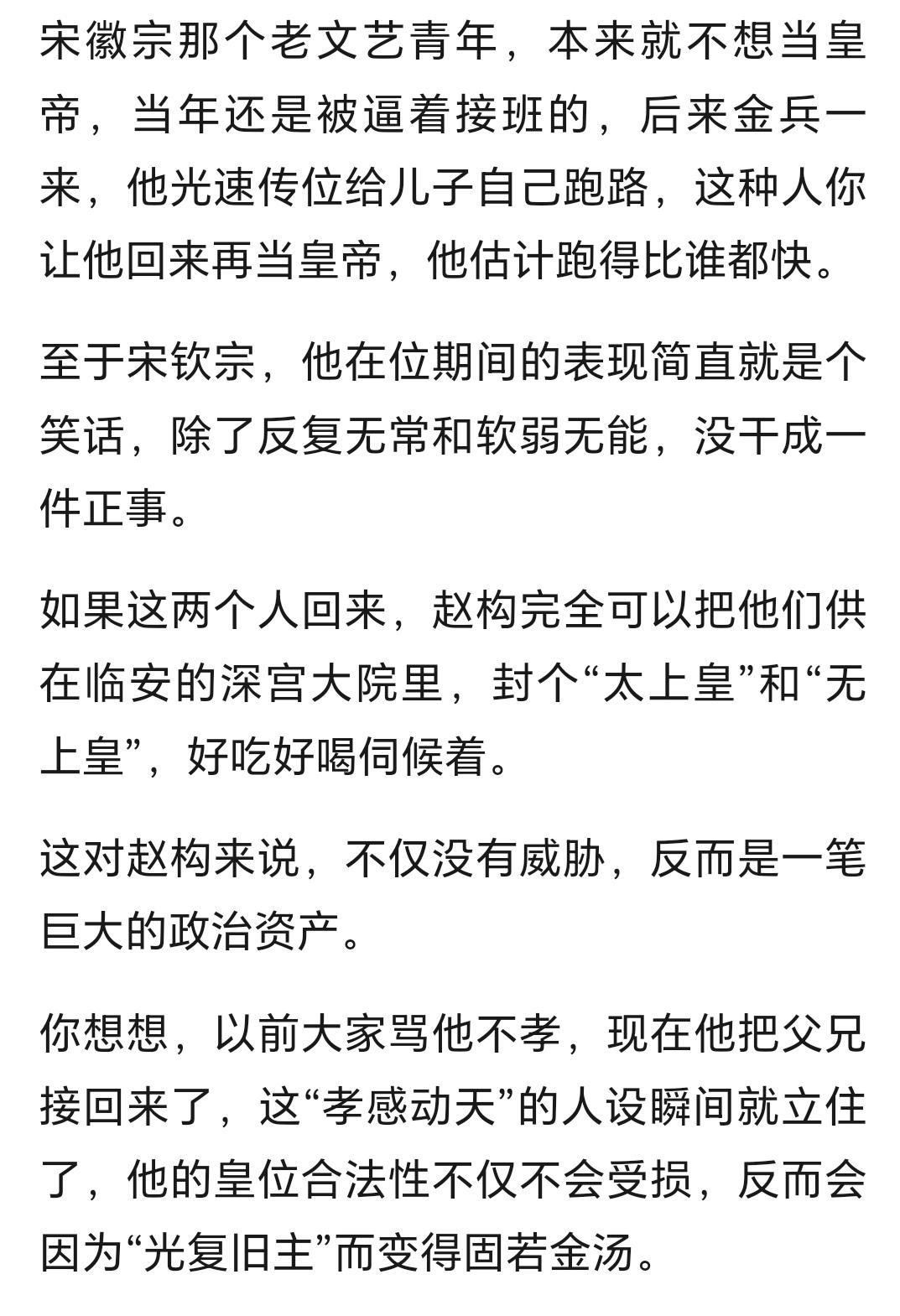 赵构其实并不怕“接回二圣”,反倒是怕他俩不返乡,那才要命