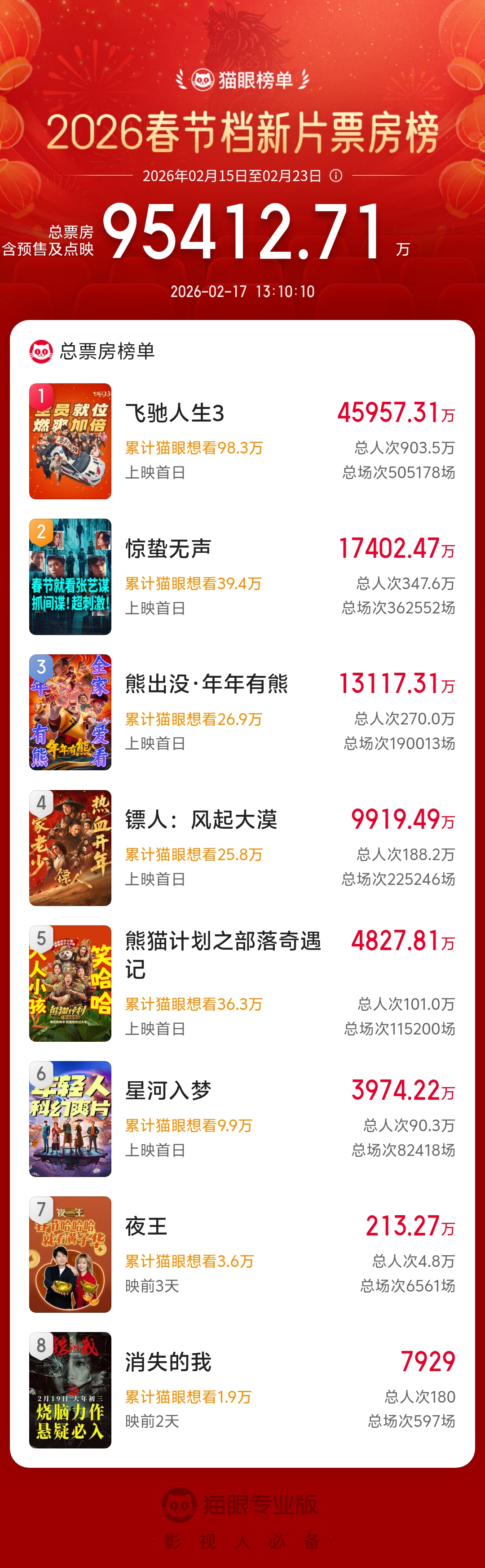 飞驰人生3票房 大年初一头一天!春节档《飞驰人生3》领跑 《惊蛰无声》和传统豪强《熊出没》现在第二三名 你有准备去看哪部不?