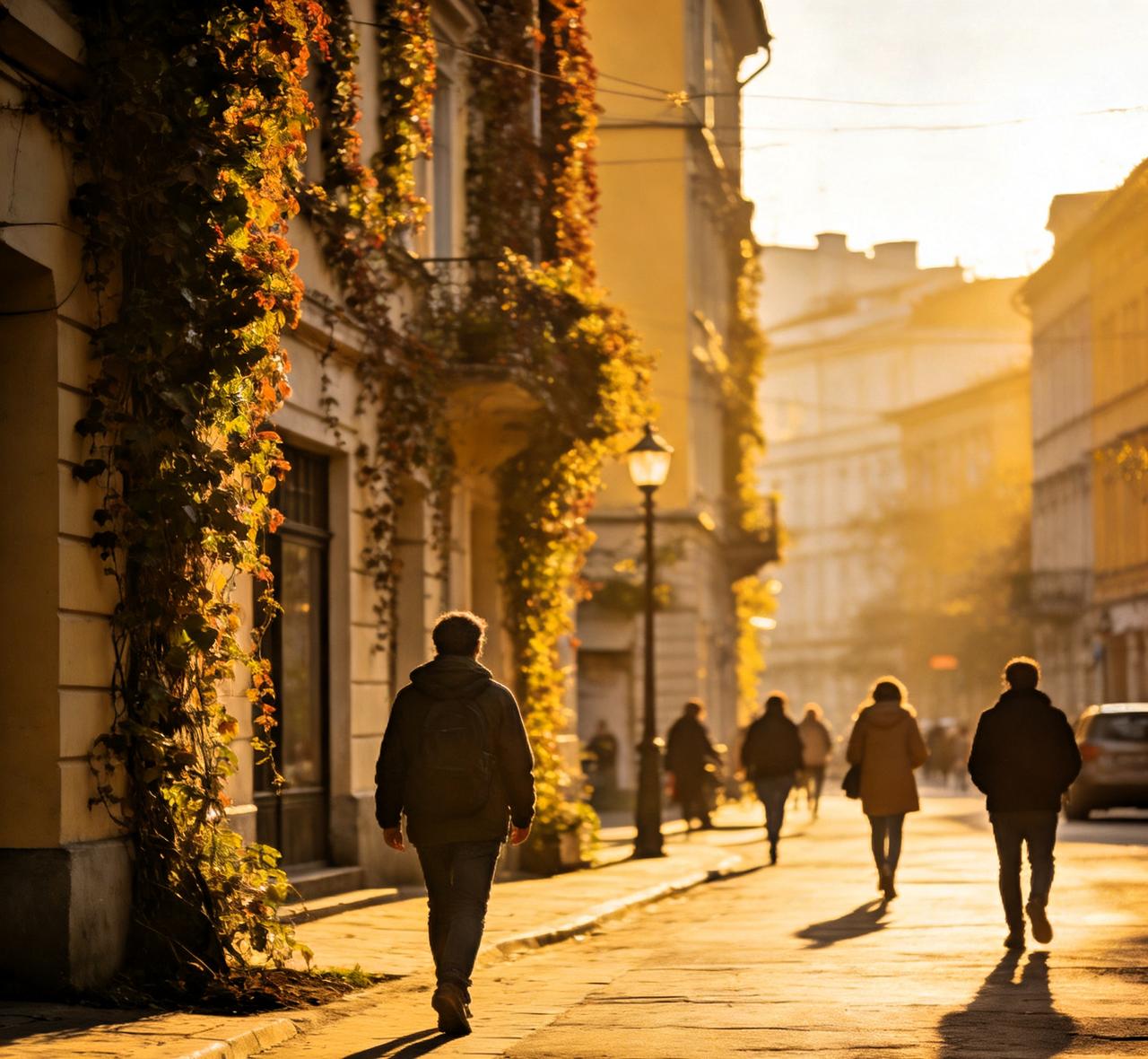 巷尾观看夕阳景