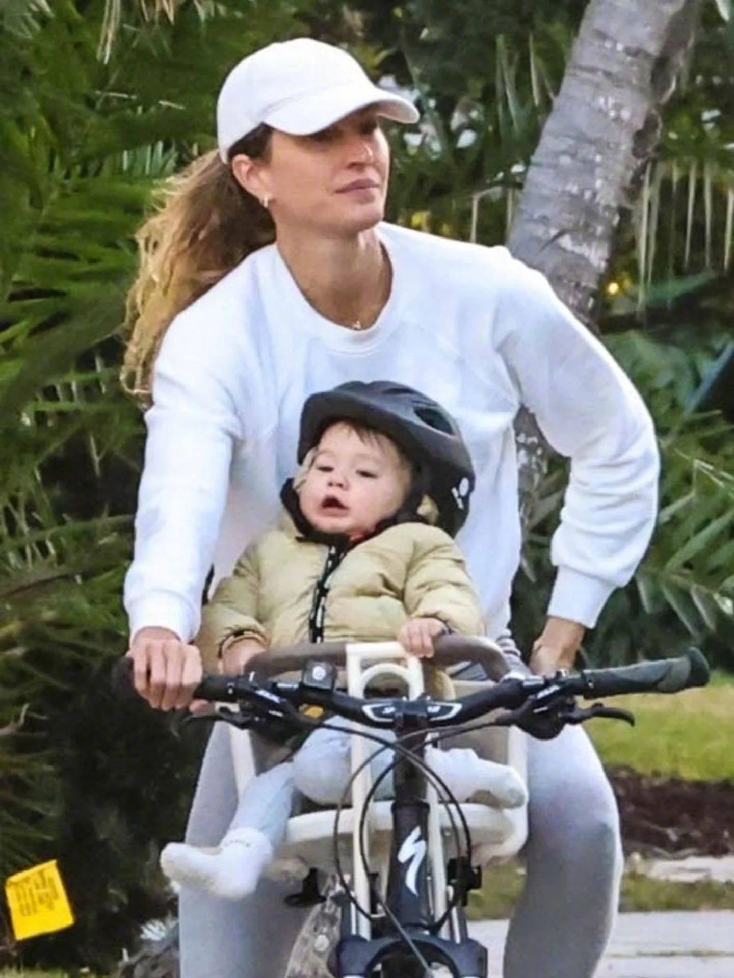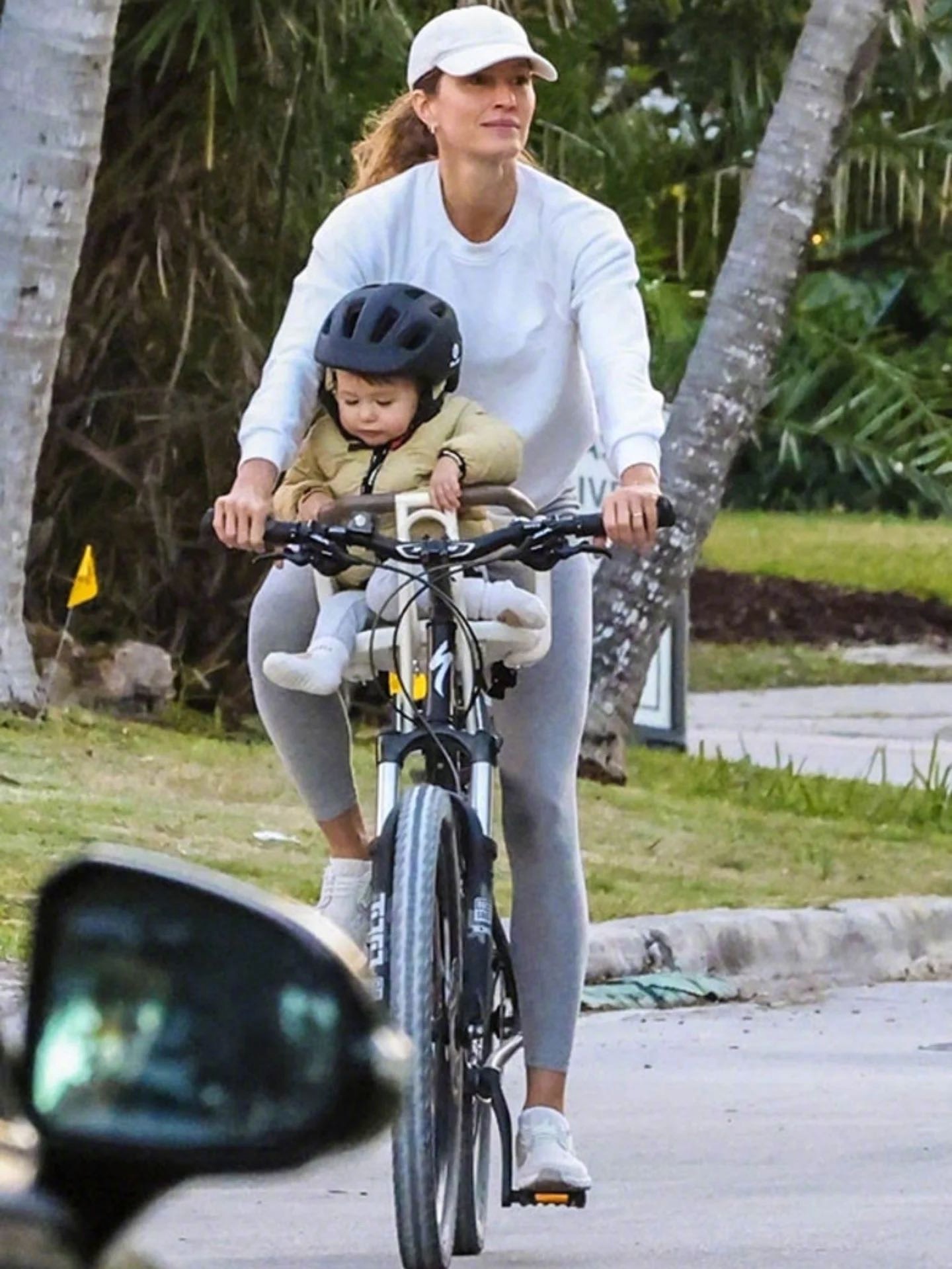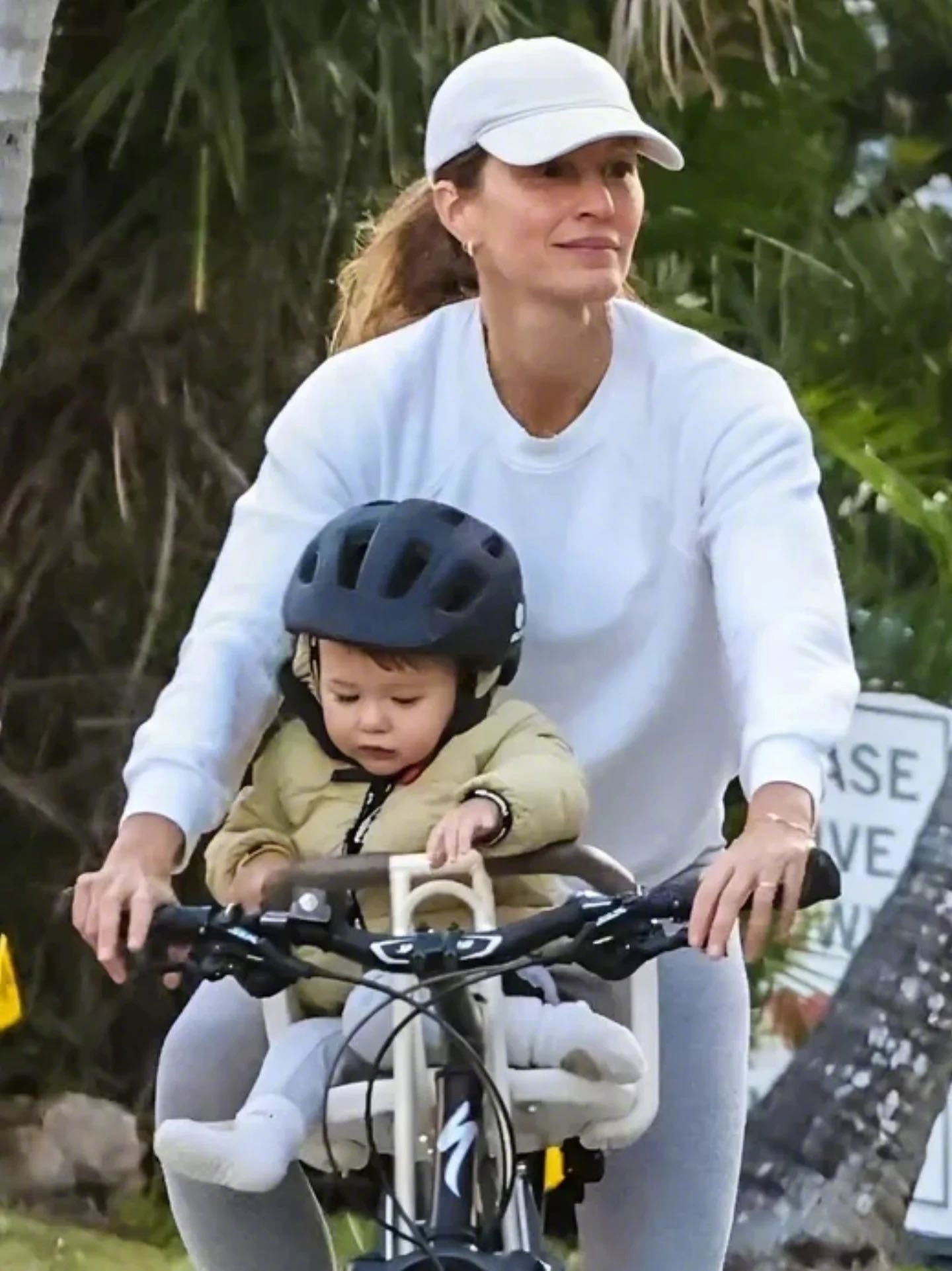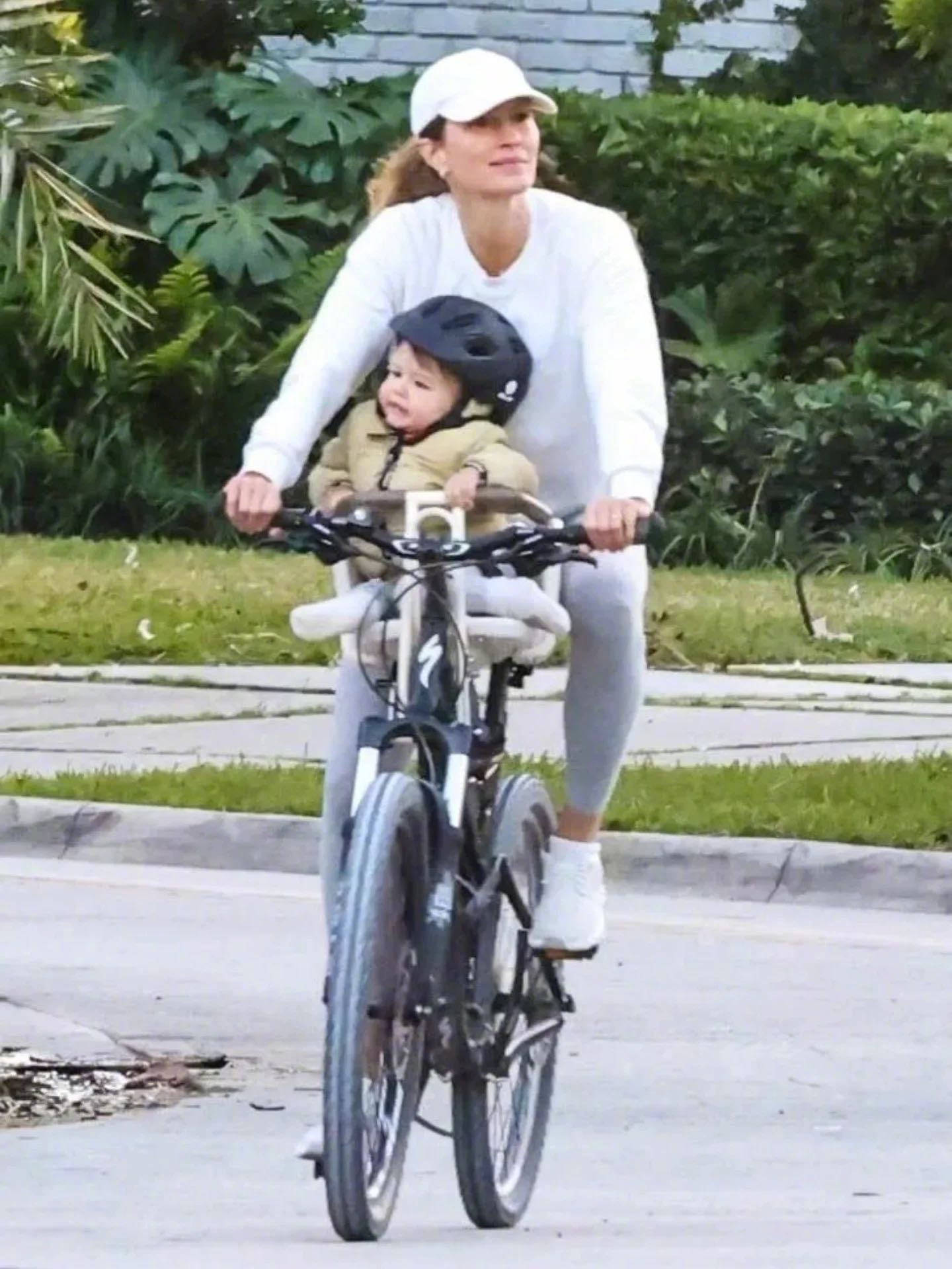 老三又出街了!吉赛尔.邦辰边健身边顺手遛儿子!小家伙貌似不想好好坐在座位上!