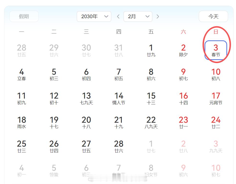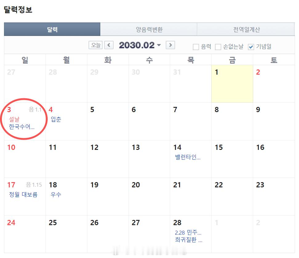 同样地,在2030年的农历正月初一,也会出现相同情况:朔点河内时间(GMT+7)晚上23点之后,仍然属于前一天。然而在北京时间,这个朔点已经到了第二天。 结果是,越南将在2030年比中国早一天过年,中国是2月3日,韩国的明时历是2月4日。
