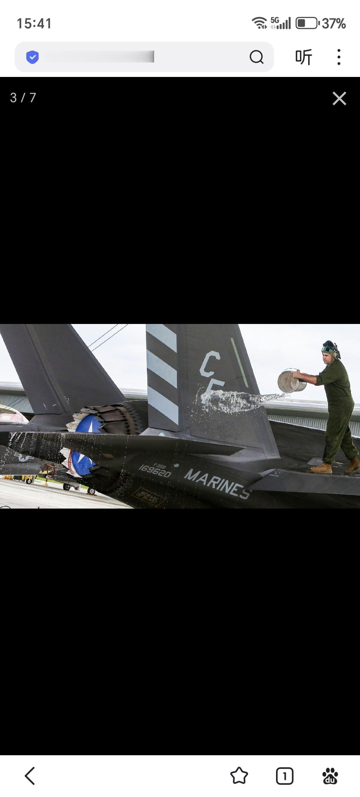 美国海军陆战队的机务清洗F-35B隐形战斗机,跟网友自己洗车的步骤差不多。 唯一的不同,洗之前要用胶布把一些舱盖的缝隙封起来......