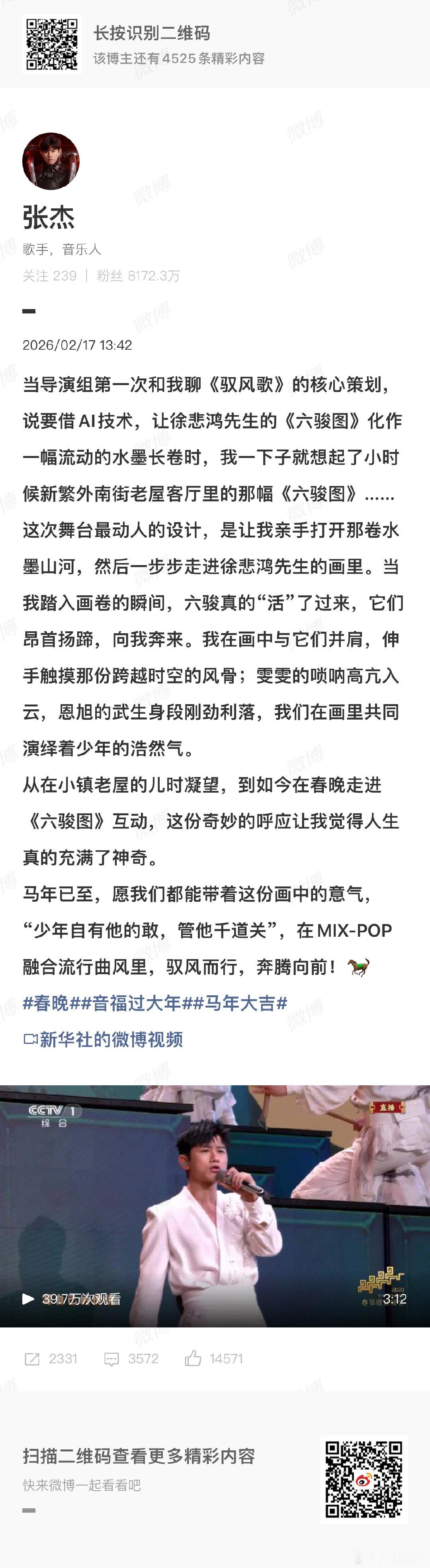 春晚张杰节目用了Seedance2.0 张杰回应7上春晚少年自有他的敢,张杰用歌声告诉我们,七次登台依旧初心不改