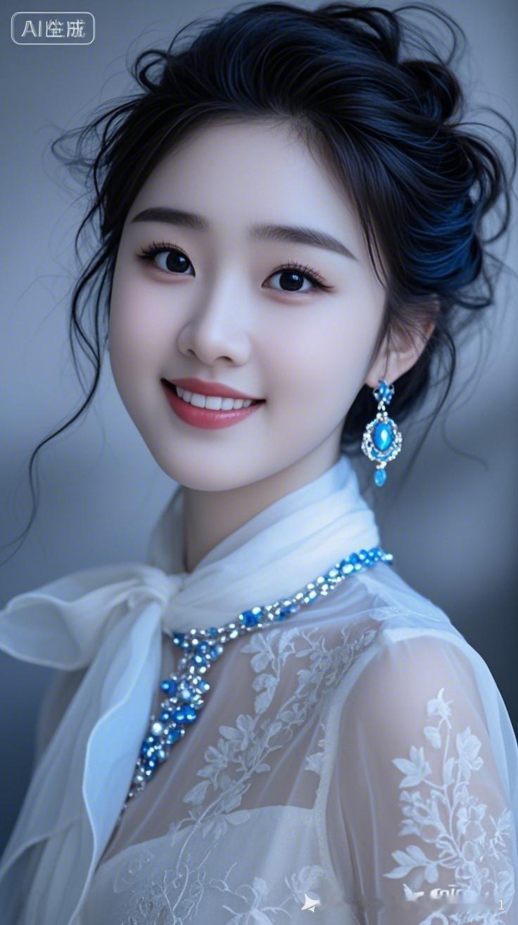 梦幻蓝宝石耳环,优雅白纱裙,甜美笑容,仙气十足!💙✨