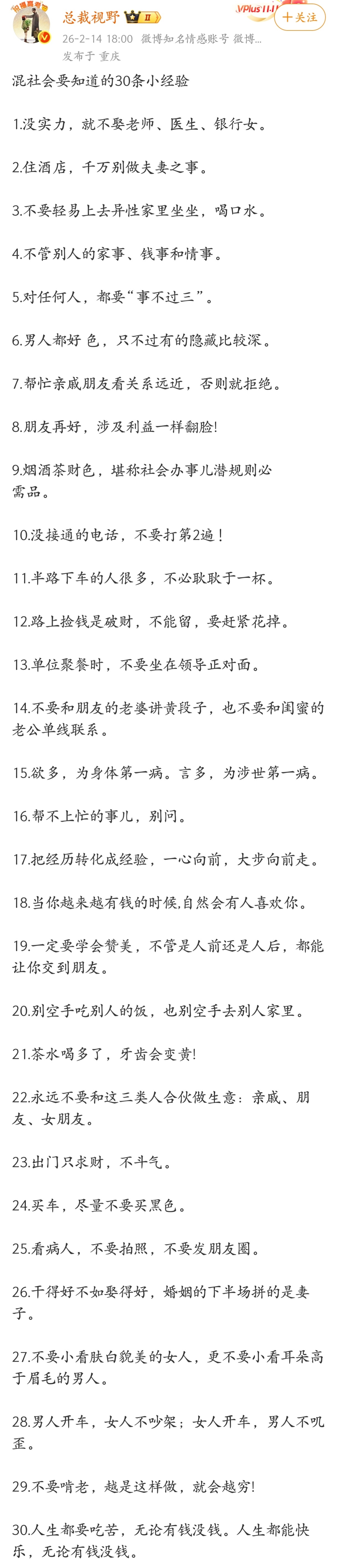混社会要知道的30条小经验。