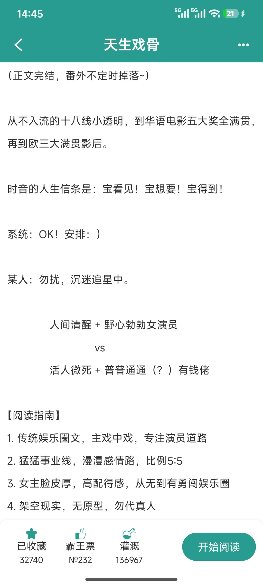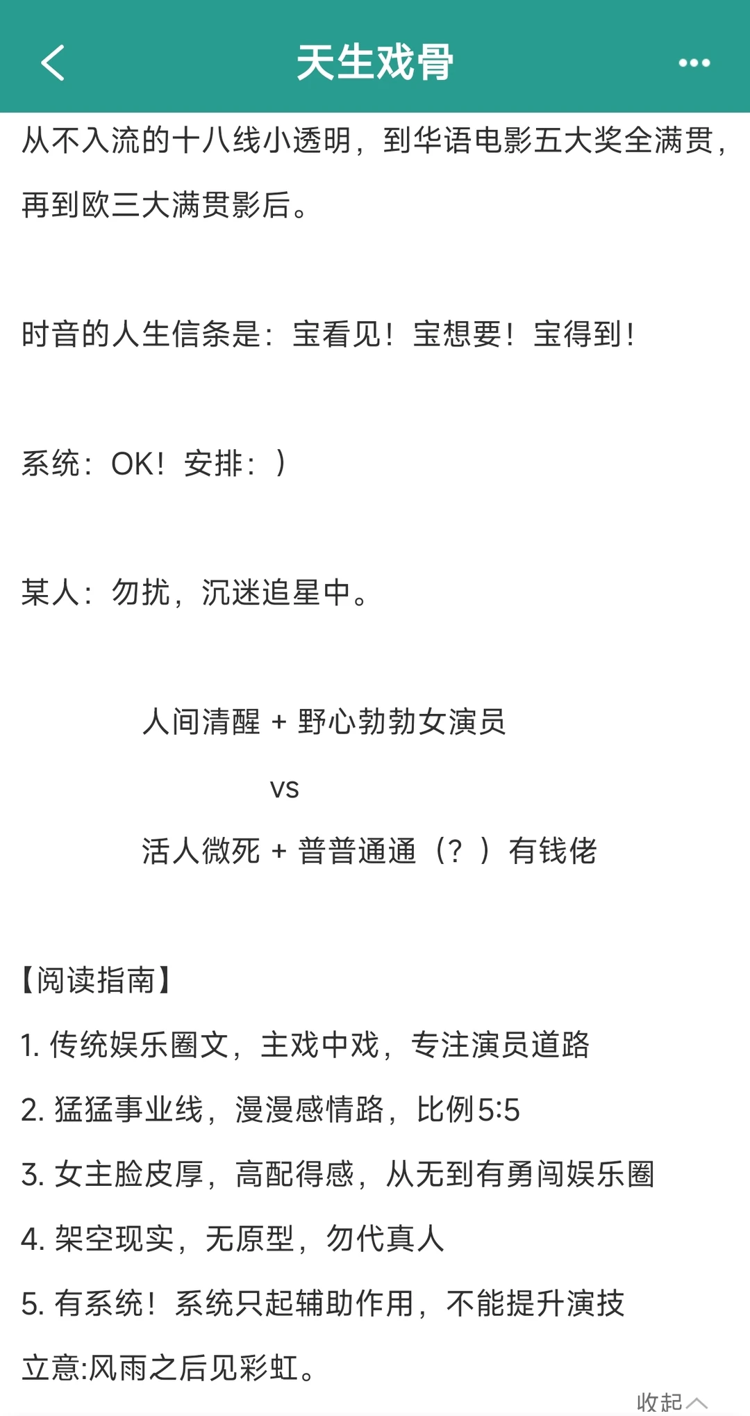 正文已完结,放心食用。 女主因为母亲的原因走上演戏的道路,本身演技就很好,第一部戏就崭露头角,在系统的加持下(预测剧组好坏、判断剧本有无漏洞、加强拍戏相关的各项技能),拍一部火一部,国内外,影视剧全满贯。 有感情线,挺好磕的,女主走的是演员路,所以恋情并没有瞒着大家,也没有引起什么负面。
