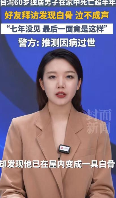 太可怕了!男子去好友家中拜访,却发现好友已在屋内变成一具白骨!男子:“七年没见,没想到最后一面竟是这样!”网友看来老了以后还是要找个老伴啊! 陈某和赖某是同窗好友,曾经一起经历过无数青春岁月的欢乐和磨难。大学毕业后,陈某留在了本地工作,而赖某则回到老家。由于各自生活忙碌,再加上家庭责任,二人逐渐失去了联系。 即便如此,每逢春节、中秋等传统节日,陈某总会发信息给赖某,关心他的近况,但这些信息几乎都没有得到回应。 渐渐地,陈某心里也默默接受了这种疏远,他以为赖某只是忙于家庭与工作。 “七年没见了,没想到最后一面竟是这样。”陈某在接受记者采访时,声音中带着一丝颤抖。 他回忆道,几天前自己和老伴计划去浙江旅行,本想着顺道拜访赖某,看看这位老朋友近况,也算弥补多年未见的遗憾。谁知这次寻访,却让他见到了生死之间最残酷的现实。 陈某抵达赖某家所在的小区时,发现小区环境宁静而整洁,但赖某家的窗帘始终紧闭,门铃按了几次也无人回应。陈某心里有些疑惑,按惯例,他拨打了赖某的电话,但电话始终无人接听。 老伴劝他:“也许人家忙着呢,别想太多。”然而,陈某的直觉告诉他,这次拜访可能不同寻常。 最终,陈某鼓起勇气,轻轻推开赖某家的门,瞬间被眼前的一幕震惊了——赖某静静地躺在房间角落,身体已经严重腐烂,衣服上积满灰尘和蛛网,仿佛时间在这里凝固成了恐怖的静默。 陈某一时无法言语,只觉得眼前的世界仿佛被凝固,老友多年不见的模样在记忆中浮现,而现实却冷酷地展现死亡的真相。 陈某立刻拨打了报警电话,警方迅速赶到现场。经过一番勘查和推断,警方初步判断赖某系自然死亡,死亡时间可能已超过半年。 由于赖某平日里独居且与外界联系少,邻居们对赖某的死竟然毫不知情,纷纷表示震惊。 一位邻居告诉记者:“赖某平时话不多,也很少出门,偶尔会去附近菜市场买菜,但最近半年再也没有见过他。” 另一位邻居补充道:“平日里小区里谁家有什么事情,大家都会互相关照,可赖某总是一个人,很少和人交流,所以没人注意到异常。” 陈某回忆起赖某生前的性格:“他一直是个内向的人,不太喜欢麻烦别人,也不善于表达自己的困难。我这几年偶尔给他发信息,也没想到他根本没能回应。” 面对好友离世的事实,陈某的内心充满自责和无力感,他说:“如果我能早点来看他,也许还能帮上忙。” 此次事件在社交媒体上引发热议。网们纷纷评论,有人感慨道:“老了以后,找个伴真的很重要,再好的友情也经不起时间的距离。” 也有人表示:“看到这样的新闻,不禁心里发凉,一个人独自面对生老病死,孤独感太强了。” 心理学专家指出,现代社会中独居老人越来越多,亲情和友情的疏远可能让老年人在生病或遇到意外时缺乏及时帮助,这对个人安全和心理健康都存在隐患。 “陈某和赖某的故事虽极端,但反映出社会在老龄化过程中需要更多关注独居老人问题。”专家说。 陈某表示,尽管此次经历让他心情沉重,但也让他更加珍惜眼前人。他回到家后,和老伴紧紧握着手,感受到平凡生活中的温暖与可贵。 他坦言,今后一定会更加主动与朋友和亲人联系,哪怕只是打个电话、发个信息,也不让时间和距离让重要的人从生活中消失。 警方提醒,独居老人和长期未联系的老朋友,平时应该保持适当的联系,遇到异常情况及时报告社区或相关部门,以免悲剧发生。 同时,这一事件也让更多人意识到,友情和亲情的联系不应因生活忙碌而断裂,及时关心和陪伴是对生命最好的尊重。
