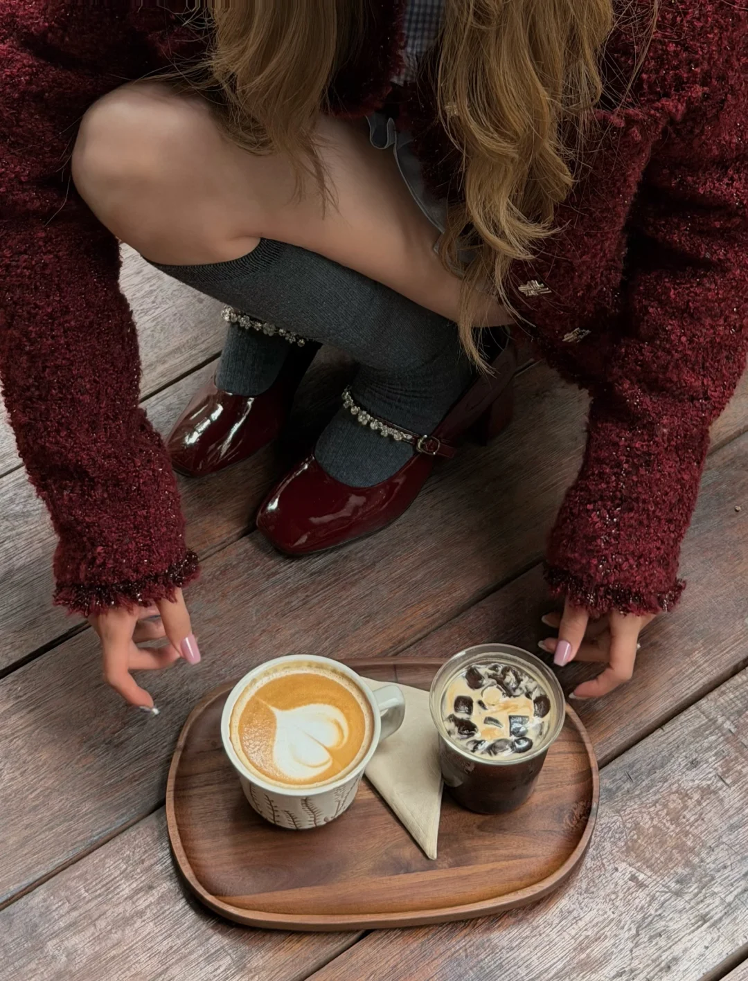 情人节快乐 终于是来了这里喝咖啡 给自己提前放假 今天的约会穿搭还成吧❤️ 还有两天过年啦嘻嘻