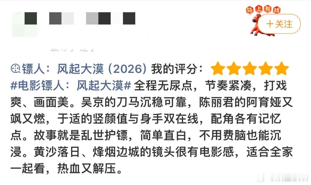 镖人如何用打戏征服合家观影受众《镖人》用大漠实景+拳拳到肉,动作戏酣畅淋漓;主线清晰+叙事稳,全家老小都没代沟。这波武侠力作,春节档稳了