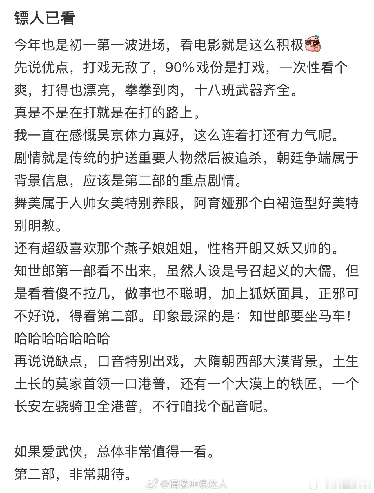 镖人第一波反馈观众称镖人远超预期《镖人》首波口碑出炉,剧情质感双双到位,观众直