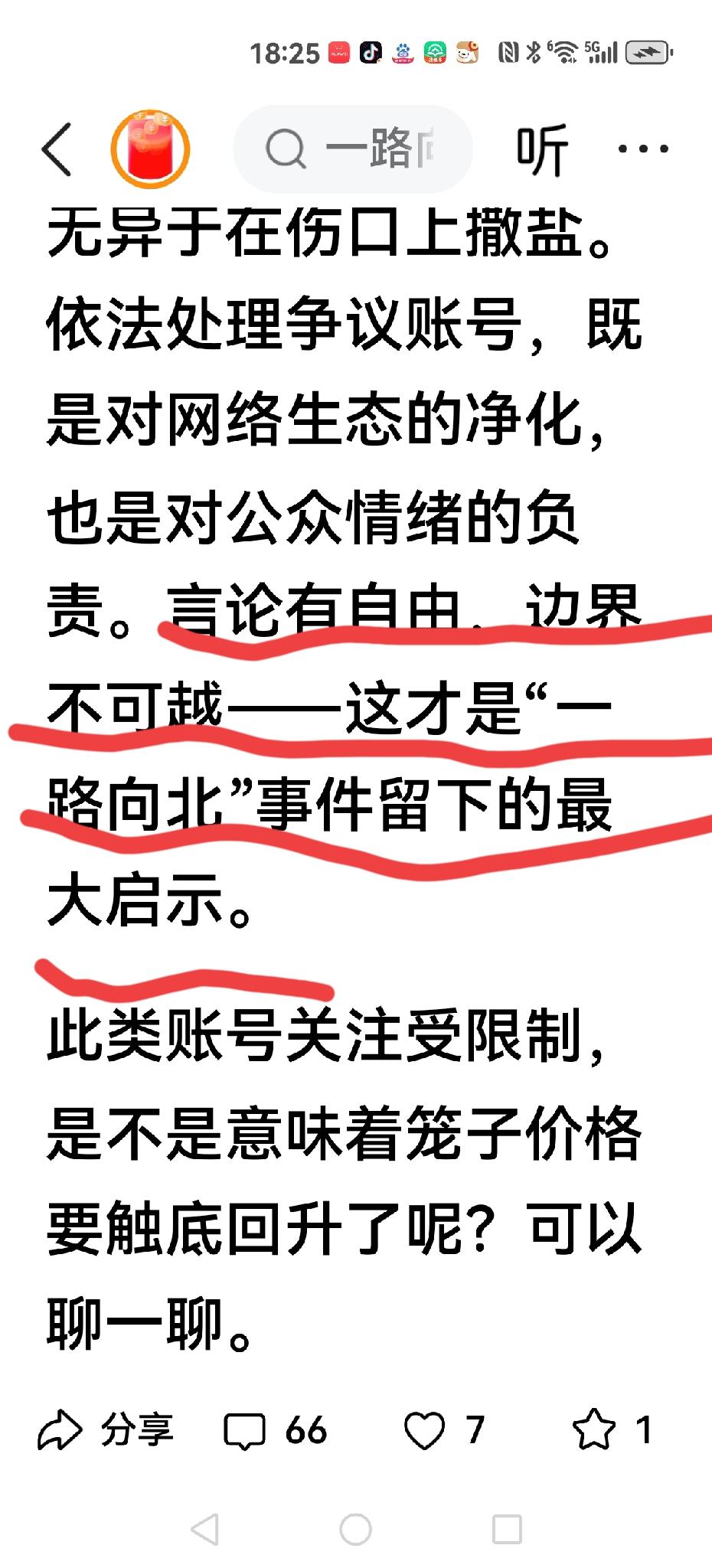 【求证】 有人说一路向北的北哥被封号了。 也是出人意外,但也是意料之中,因为对政策歪曲解读,任意否定,这本身就是“没有边界感”。 北哥错在不是说房价下跌,而是大肆鼓吹房价下跌同时否定所有政策与手段,如果真的有道理还可以,完全是毫无道理任意歪曲。 还有一个需要求证就是有网友说“一边唱空,一边买房”,这事还是要向大家求证,如果说靠运气积攒人气,再言不由衷,与司马南如出一辙,那就是有问题。