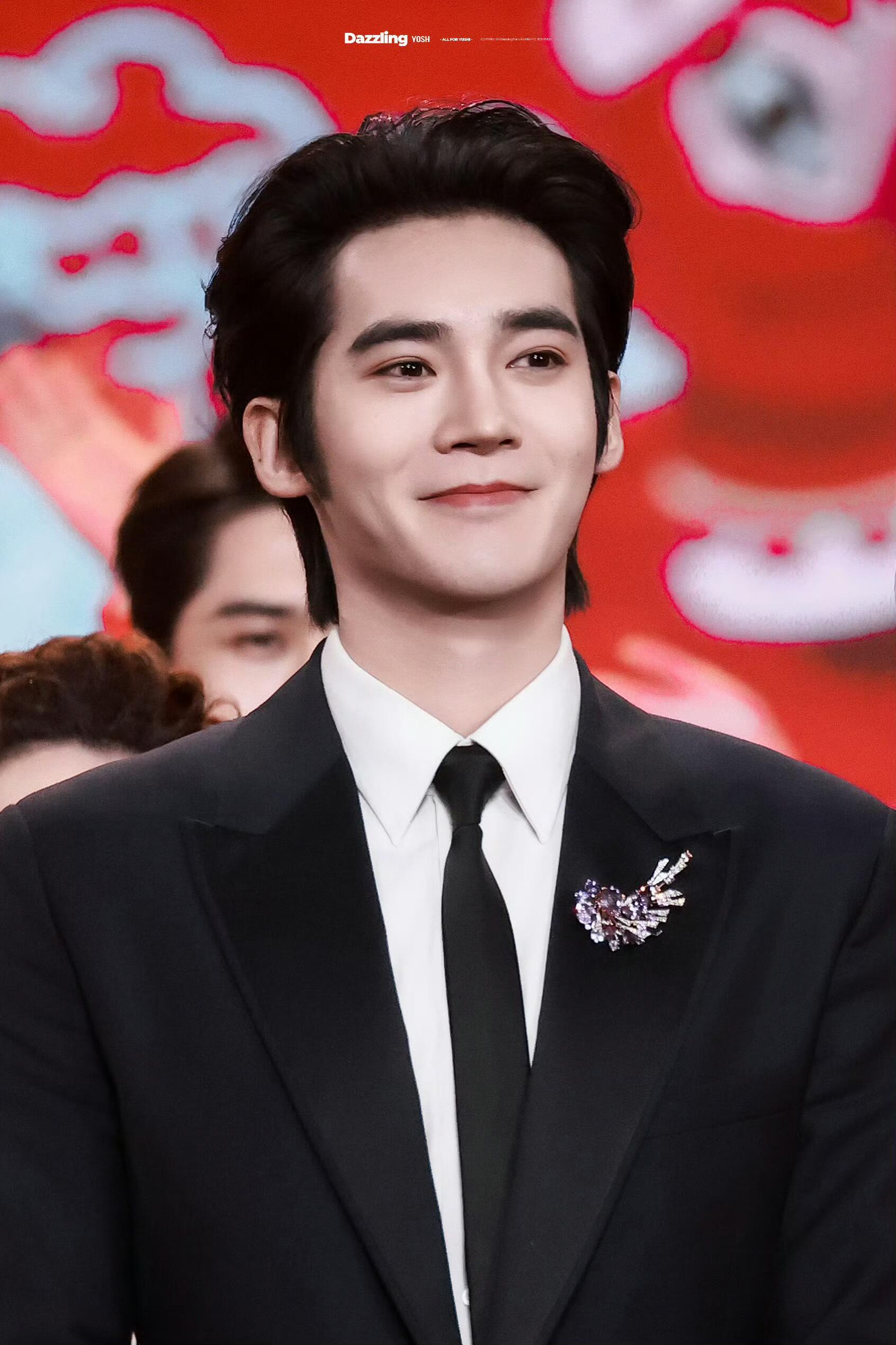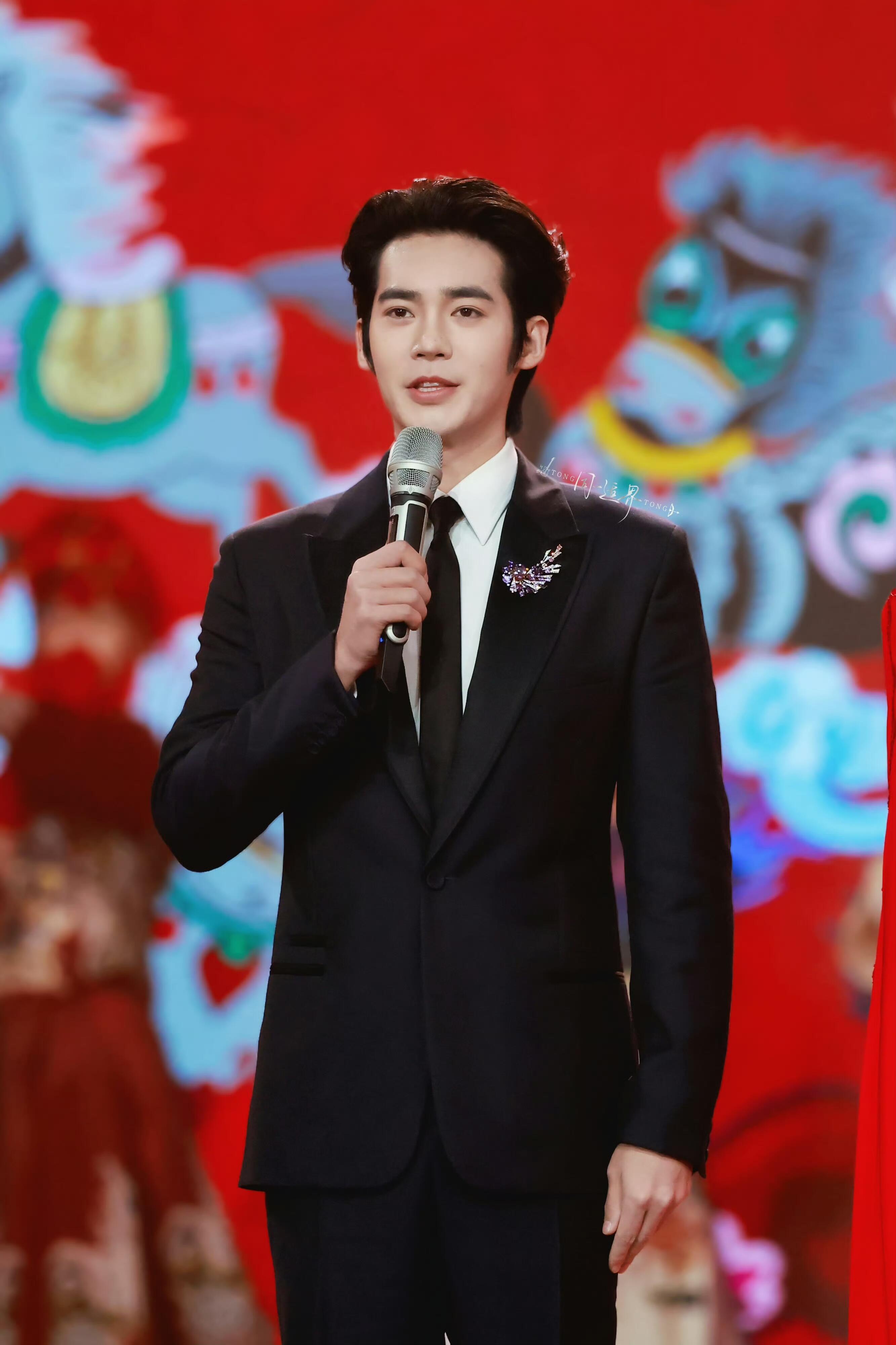 于适佩戴CHAUMET天穹皓境高定珠宝套系凌空圣光主题胸针,笔挺西装。出任 百花迎春晚会主持人。