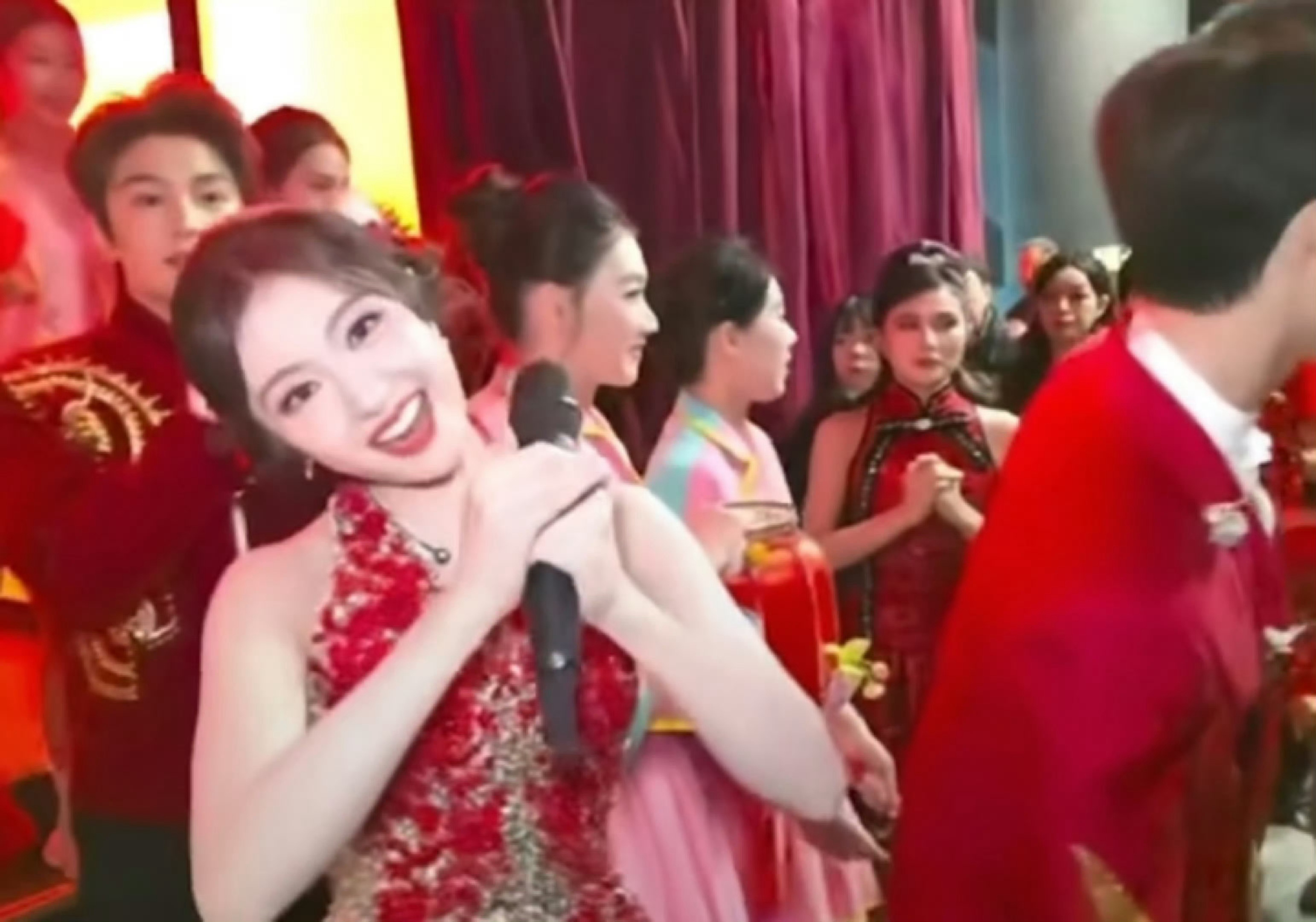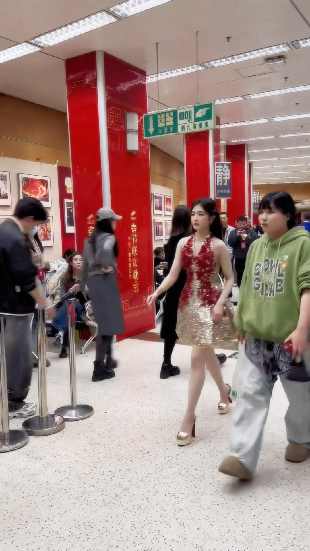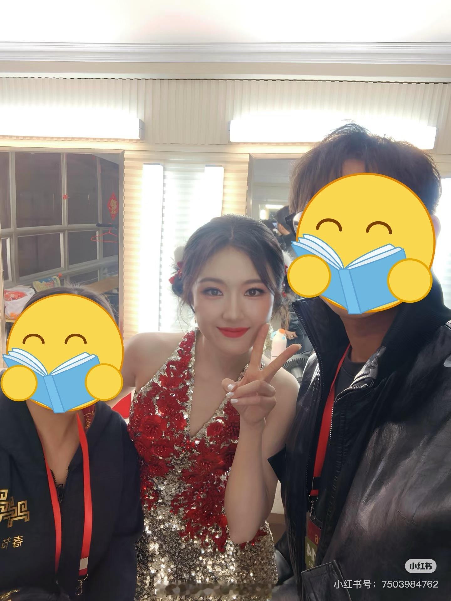 张天爱跟素人合影,胯真的好宽,大宅院似的